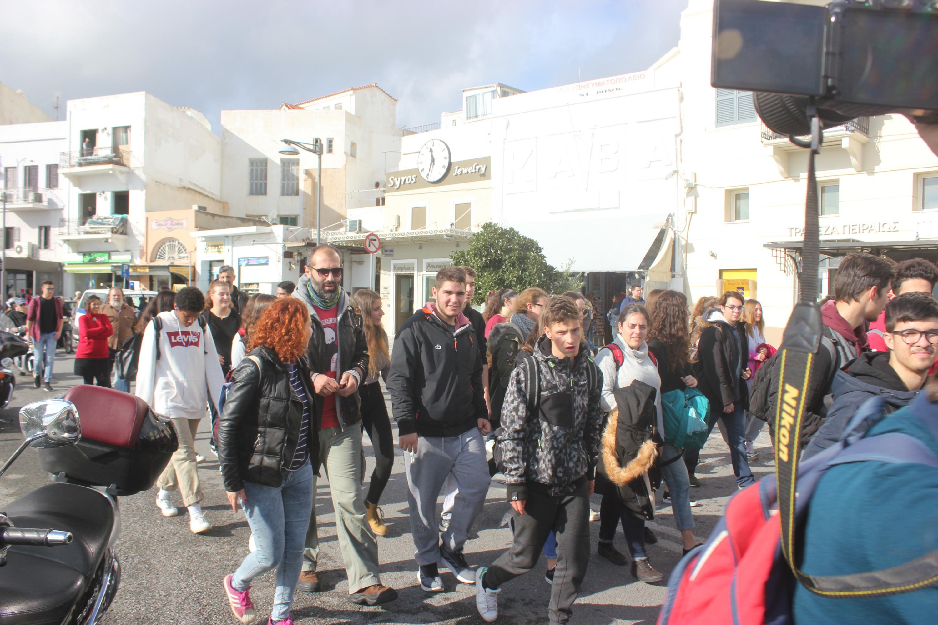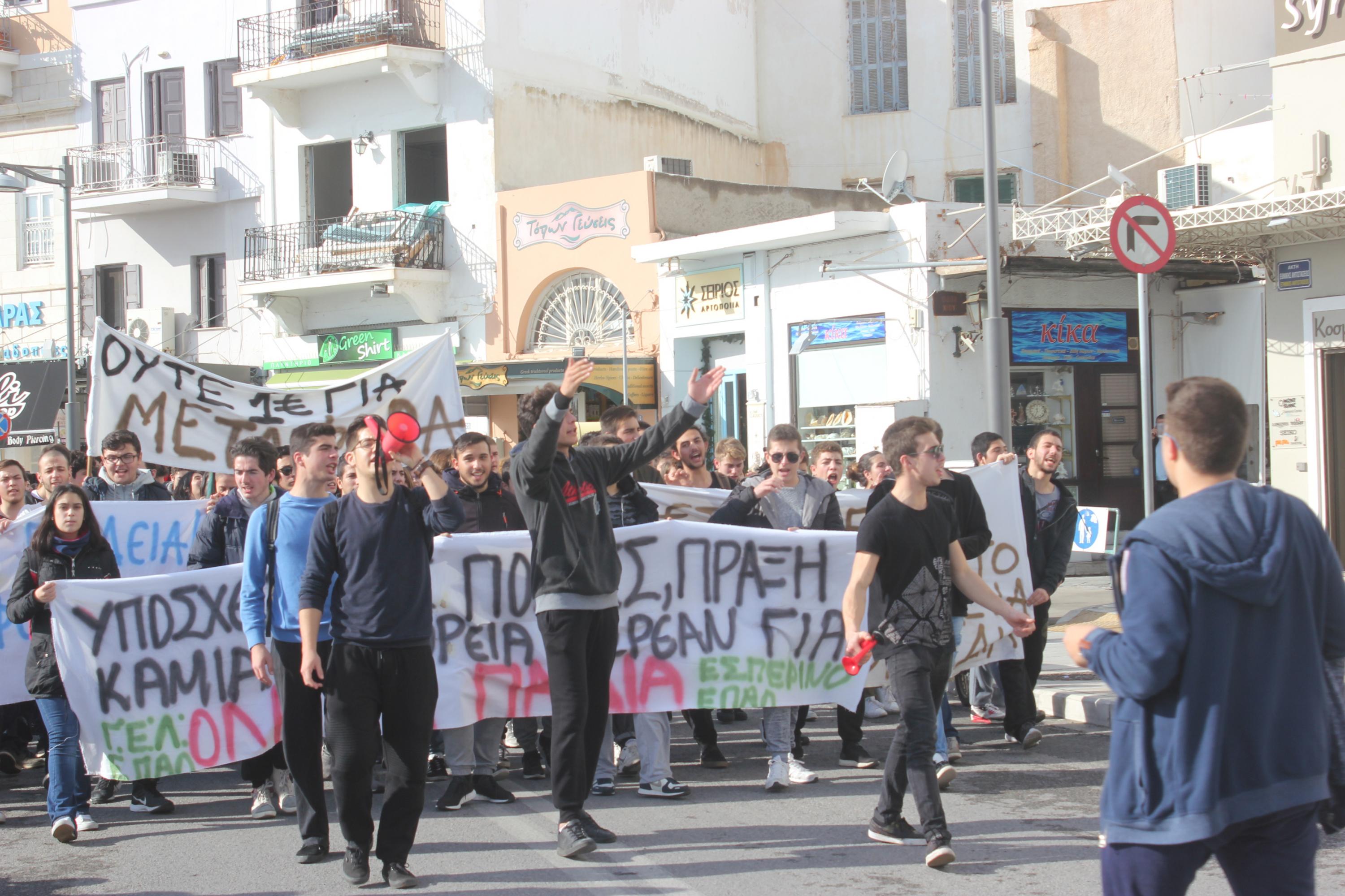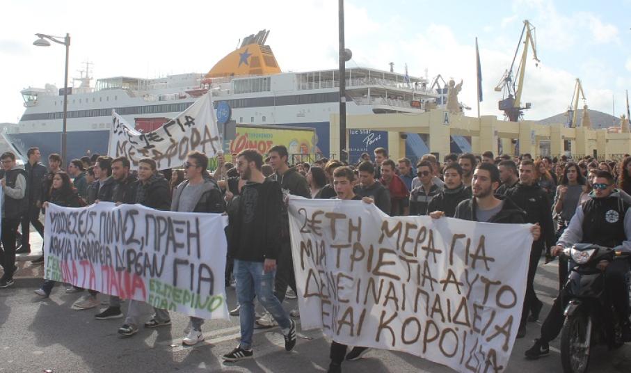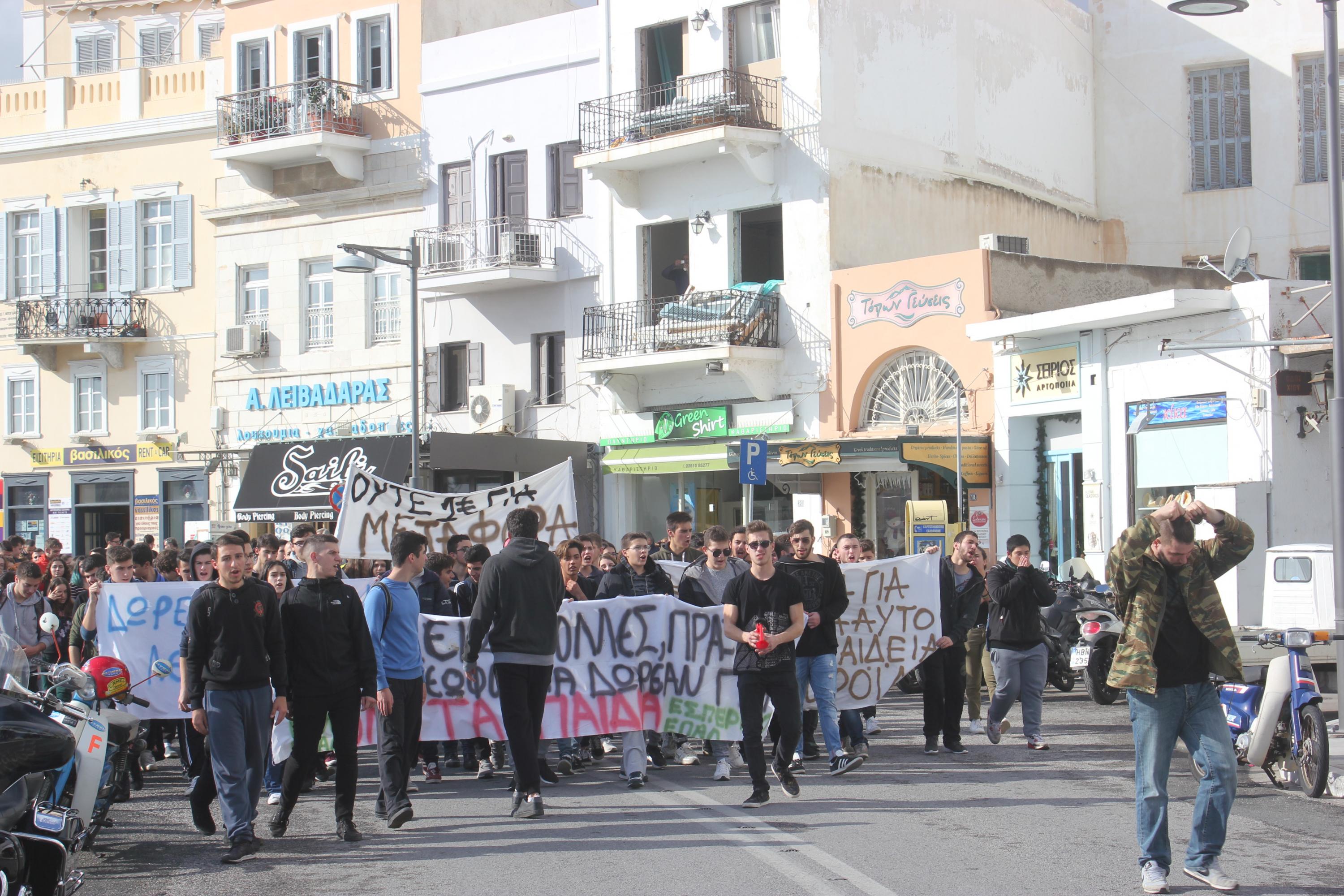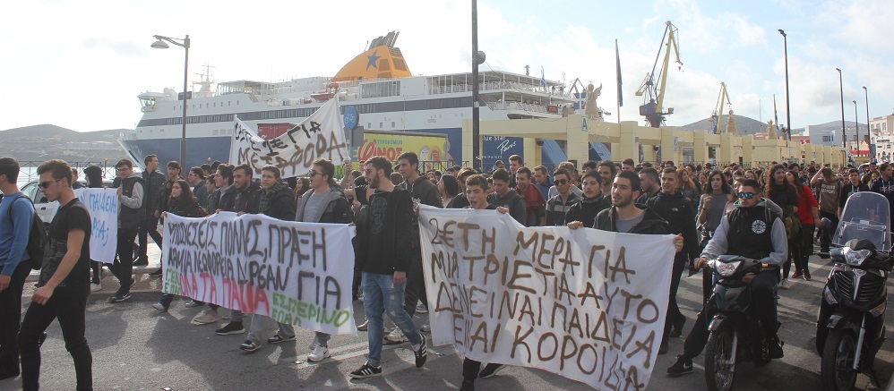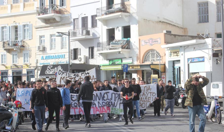 Πορεία διαμαρτυρίας των μαθητών του Γενικού Λυκείου Σύρου, του ΕΠΑ.Λ. Σύρου και του Εσπερινού Λυκείου Σύρου