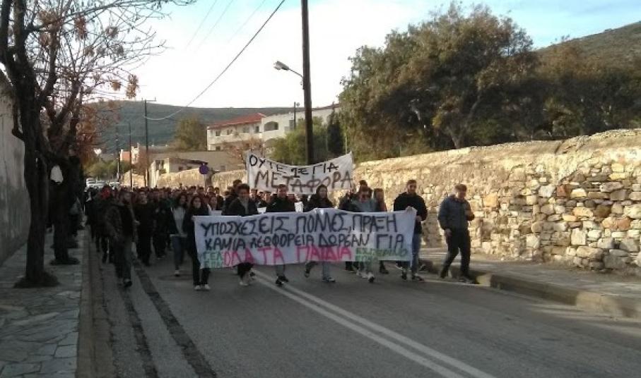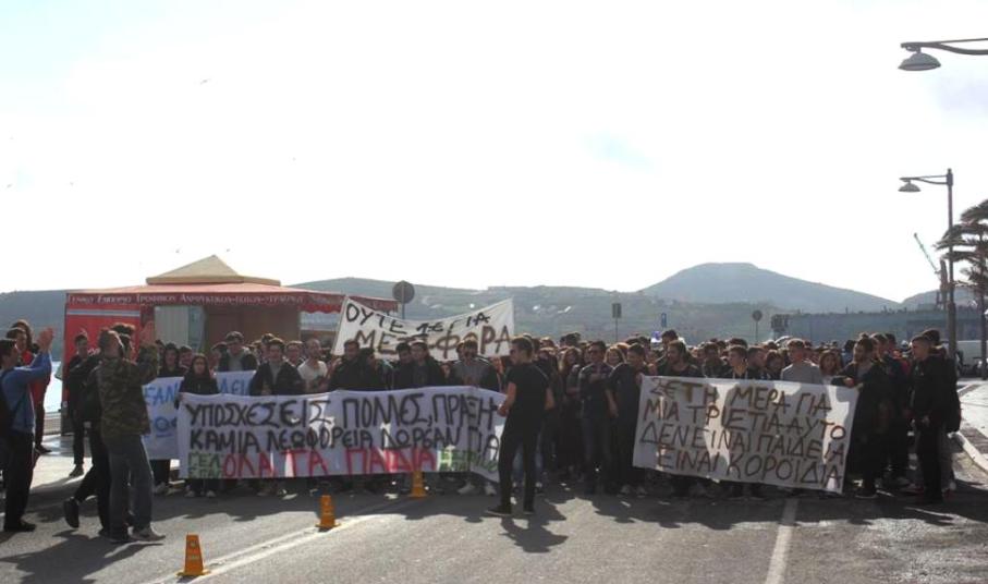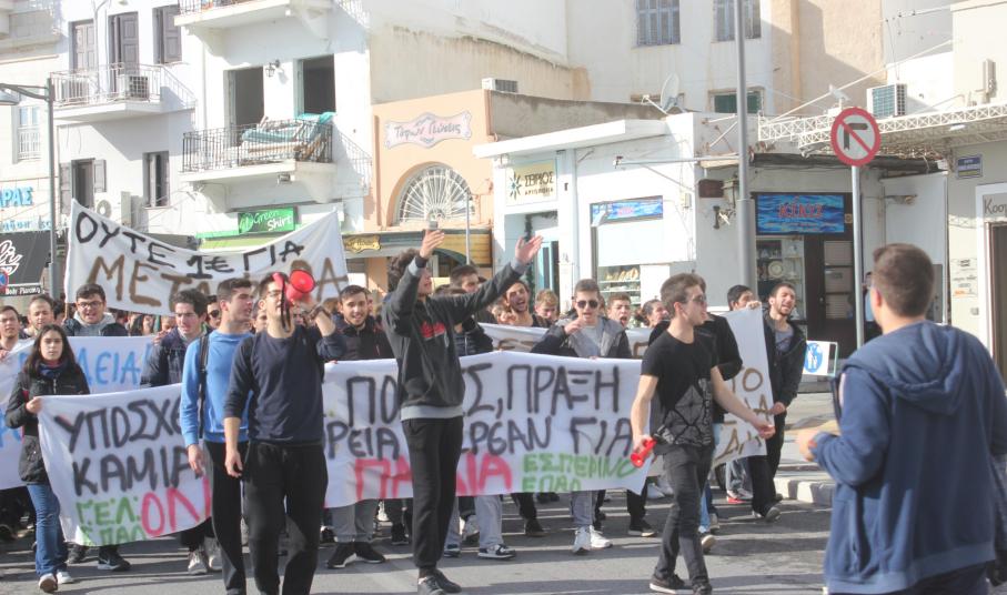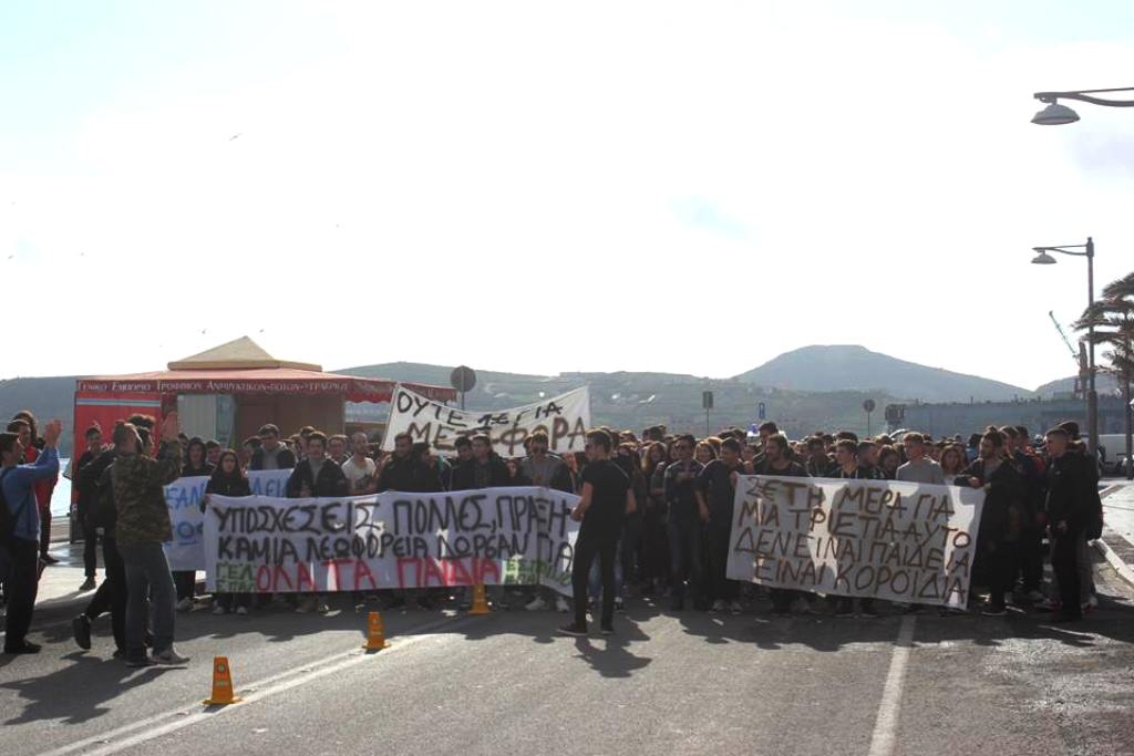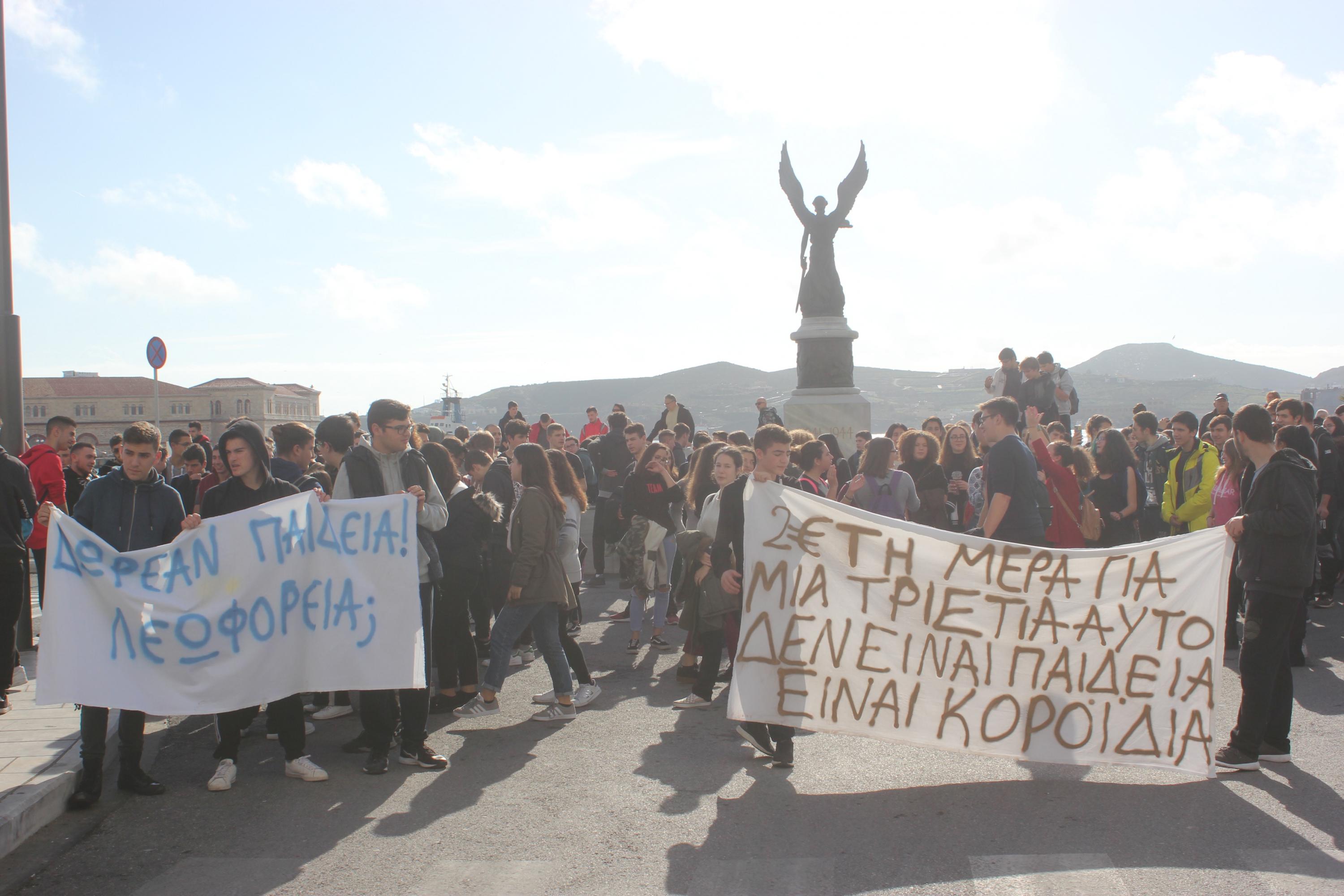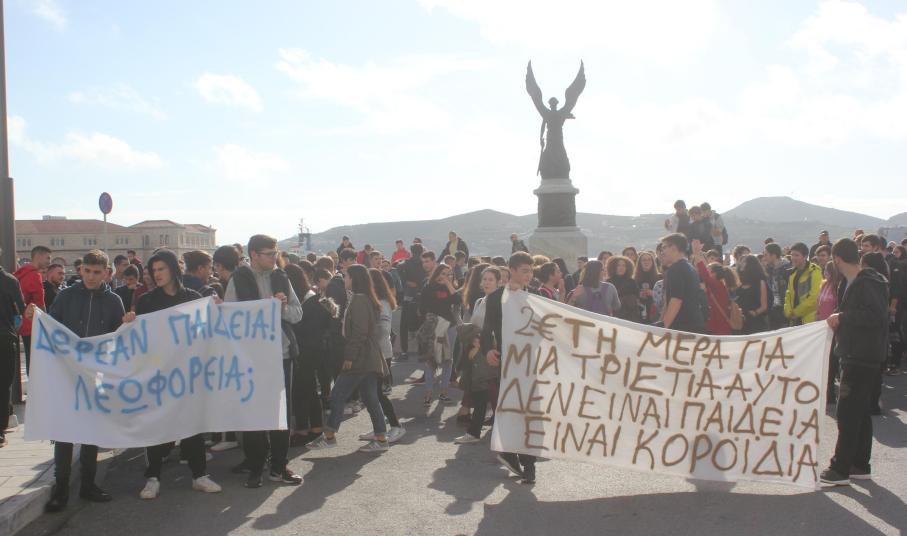 Πορεία διαμαρτυρίας των μαθητών του Γενικού Λυκείου Σύρου, του ΕΠΑ.Λ. Σύρου και του Εσπερινού Λυκείου Σύρου