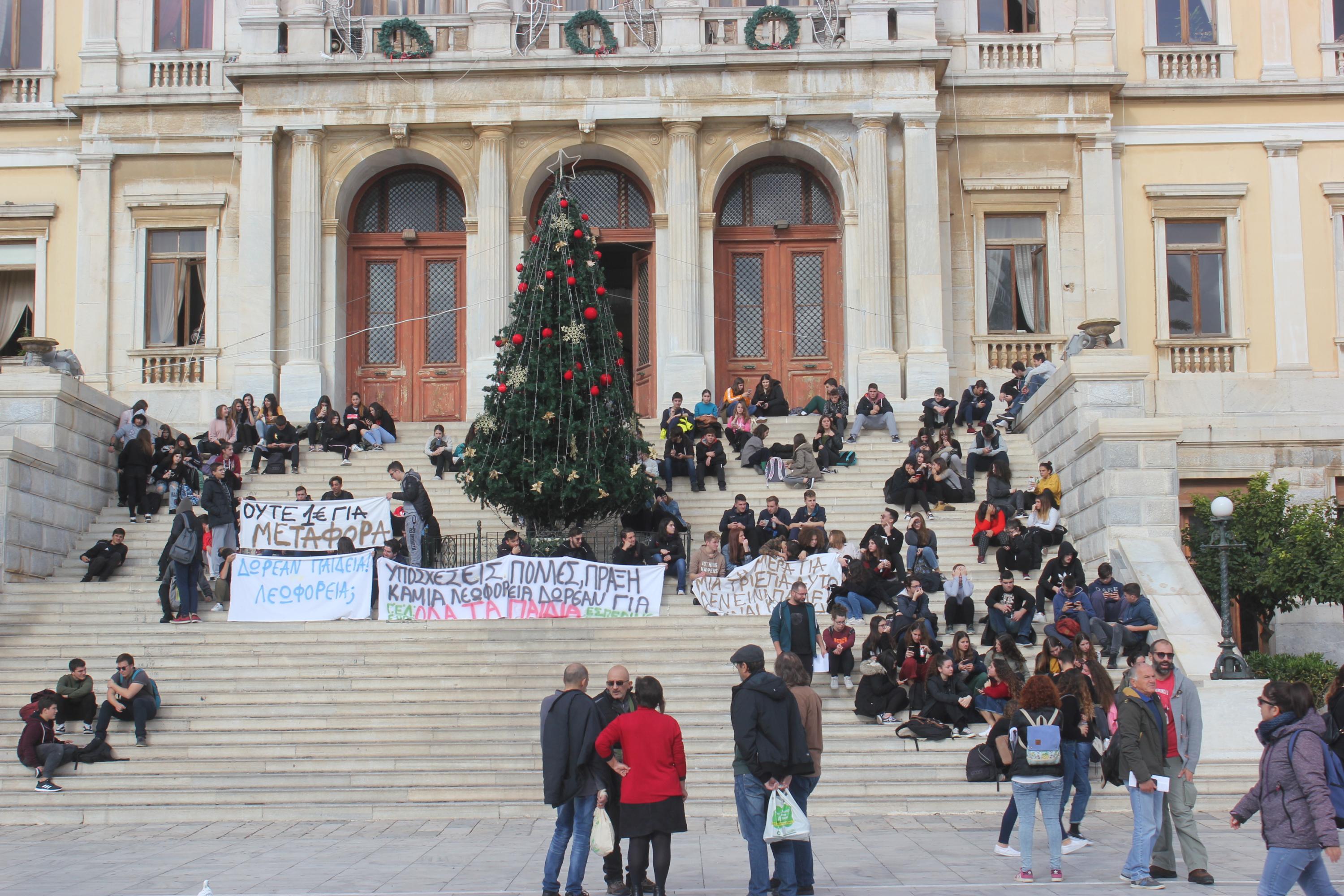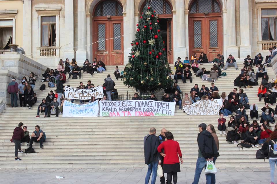 Οι μαθητές των λυκείων της Σύρου “κατέβηκαν” στους δρόμους, με αίτημα τη δωρεάν μεταφορά όλων των παιδιών, σε συνέχεια των κινητοποιήσεών τους με την κατάληψη του σχολικού συγκροτήματος. Η πορεία των μαθητών του Γενικού Λυκείου Σύρου, του Επαγγελματικού Λυκείου Σύρου, αλλά και του Εσπερινού Λυκείου Σύρου, ξεκίνησε από το Μάννα, και κατευθύνθηκε προς την Ερμούπολη.