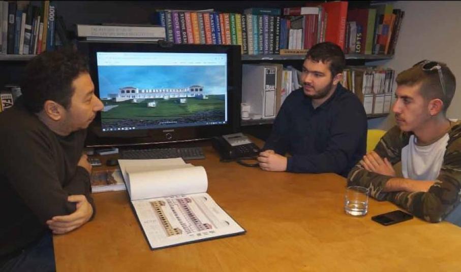Την επόμενη μέρα της παραμονής τους στην Αθήνα, μαθητές και εκπαιδευτικοί συνάντησαν τον αρχιτέκτονα Μιχαήλ Προβελέγγιο, ο οποίος έχει μελετήσει το κτίριο στα πλαίσια της διδακτορικής του διατριβής. Ο κ. Προβελέγγιος έδειξε στην ομάδα κατόψεις και σχέδια του κτιρίου, καταθέτοντας σημαντικές πληροφορίες για την αρχική κατασκευή και τις μεταγενέστερες παρεμβάσεις σε αυτό.