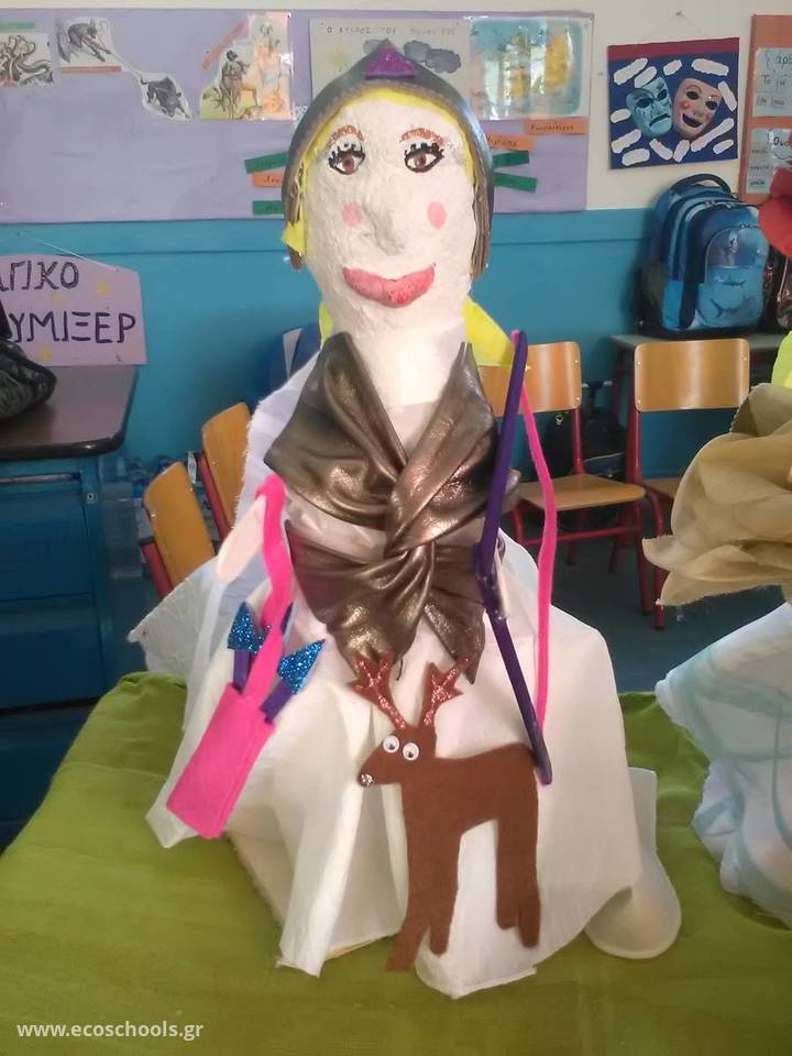 Τα απορρίμματα αποτέλεσαν τον «κορμό» των φετινών δράσεων του σχολείου της Μήλου. Μια σακούλα πριονίδι από τα απορρίμματα ενός ξυλουργείου, πλαστικά μπουκαλάκια από τα οικιακά απορρίμματα και κουρελάκια από το εργαστήριο μιας μοδίστρας ήταν η πρώτη ύλη των μαθητών για την κατασκευή κούκλων. Παιδιά και εκπαιδευτικοί άντλησαν τα θέματά τους από την αρχαία ελληνική μυθολογία και τα παρουσίασαν στους συμμαθητές και τους γονείς τους.