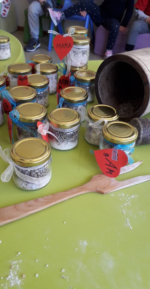Τα άλατα συσκευάστηκαν σε βαζάκια από τα παιδιά και δόθηκαν την Παρασκευή 10 Μαΐου σε μητέρες που υπηρετούν στην Αστυνομία, στο Στρατό, στην Πυροσβεστική και στο Λιμενικό Σώμα. Το προσωπικό του Παιδικού Σταθμού αποφάσισε να τιμήσει με αυτό τον τρόπο τις συγκεκριμένες γυναίκες (12 στον αριθμό), λαμβάνοντας υπόψιν τον διττό ρόλο που έχουν τόσο ως μητέρες όσο και ως εργαζόμενες με βασική αρμοδιότητα την εξασφάλιση της ασφάλειας όλων μας.
