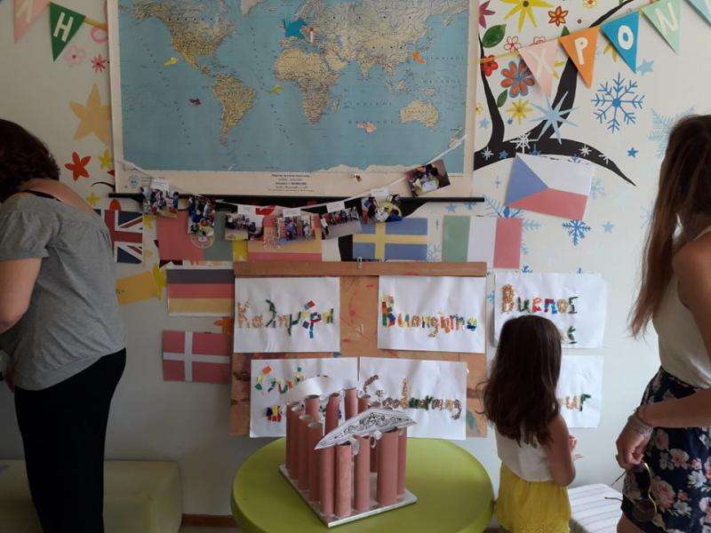 Ακολούθησε παρουσίαση του ετήσιου σχεδίου εργασίας των Προνηπίων, με θέμα «Ταξιδεύοντας στον κόσμο», όπου γονείς και παιδιά είχαν την ευκαιρία να δουν από κοντά κατασκευές, φωτογραφίες, βιβλία καθώς και διάφορα βίντεο μέσω του Artutor, μίας εφαρμογής εικονικής πραγματικότητας.