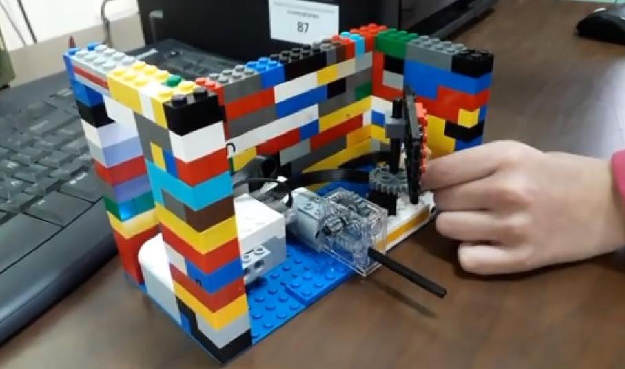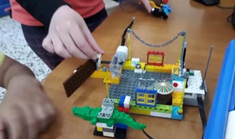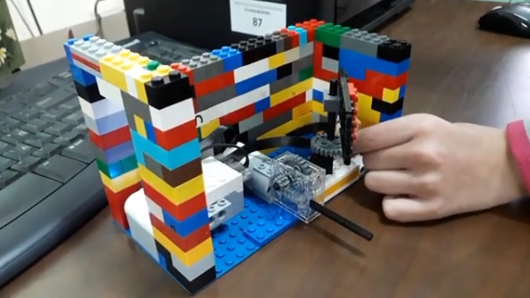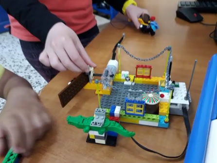 Στα μαθήματα ρομποτικής, τα παιδιά του Ε1 κλήθηκαν αρχικά να στήσουν έναν κινητήρα κάθετα στο οριζόντιο επίπεδο και να στηρίξουν στον άξονα του κινητήρα, μια πόρτα. Η ίδια η κατασκευή αποδείχτηκε δύσκολη. Οι μαθητές διαπίστωσαν ότι η πόρτα ανοιγόκλεινε πολύ γρήγορα όταν προγραμματίστηκε και δεν μπορούσαν να μειώσουν την ταχύτητα ικανοποιητικά μέσω του προγραμματισμού. Αποφάσισαν λοιπόν να ξανακάνουν τις πόρτες με μια άλλη διάταξη, αυτή τη φορά παράλληλα με το οριζόντιο επίπεδο, χρησιμοποιώντας τον κοχλία μέσω του οποίου η ταχύτητα μειώθηκε αρκετά.