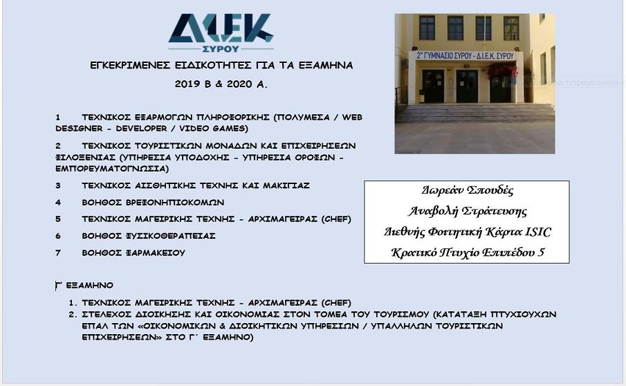 Δόθηκαν αναλυτικά οι ειδικότητες των 2 Δ.Ι.Ε.Κ. που λειτουργούν στο νομό Κυκλάδων, της Νάξου και της Σύρου.