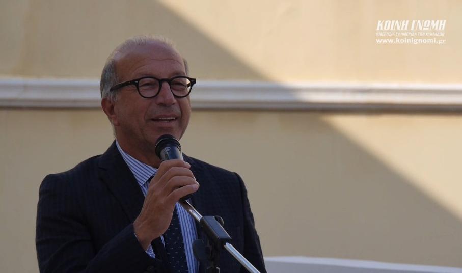 Από την πλευρά του, ο Αντιπεριφερειάρχης Κυκλάδων τόνισε, πως είναι μία ημέρα χαράς για όλους, γονείς, εκπαιδευτικούς και μαθητές. Συμβούλευσε δε, τα παιδιά να αγκαλιάσουν το “μεγάλο τους σπίτι” και να αξιοποιήσουν τον ελεύθερο από μελέτη χρόνο τους μαζί με τους φίλους τους, καθώς το σχολείο αποτελεί φωλιά, για τη σφυρηλάτηση σχέσεων ζωής, αλλά και για τη δημιουργία ανθρώπων που θα αλλάξουν την κοινωνία.