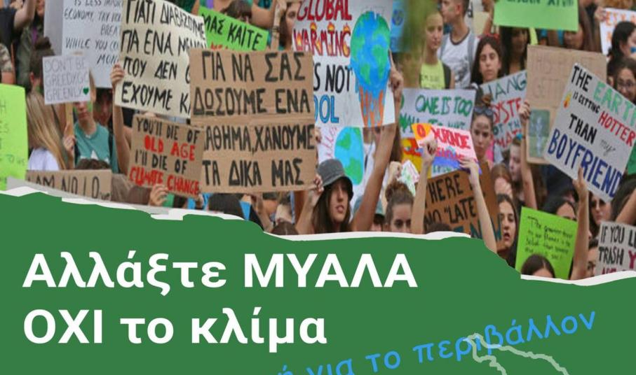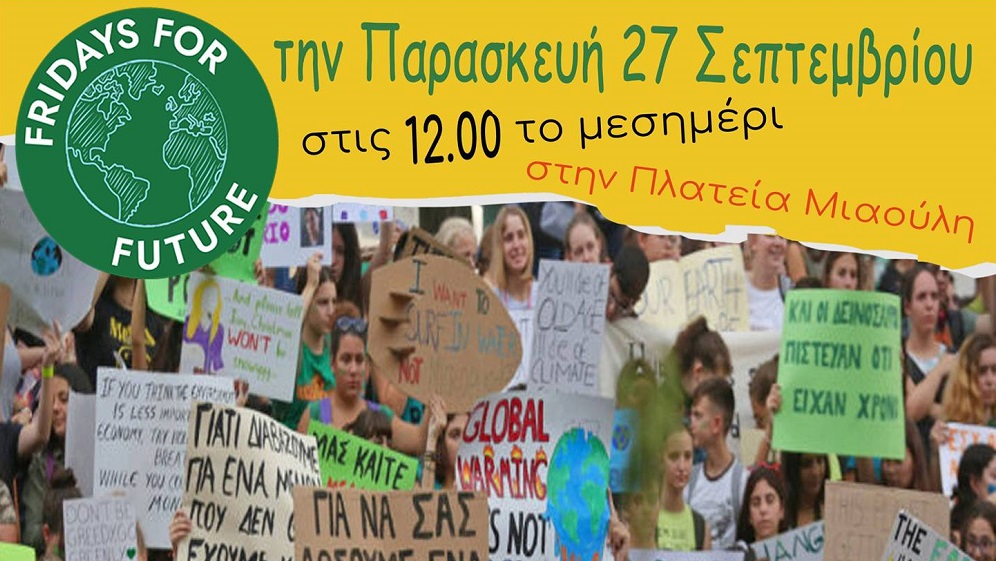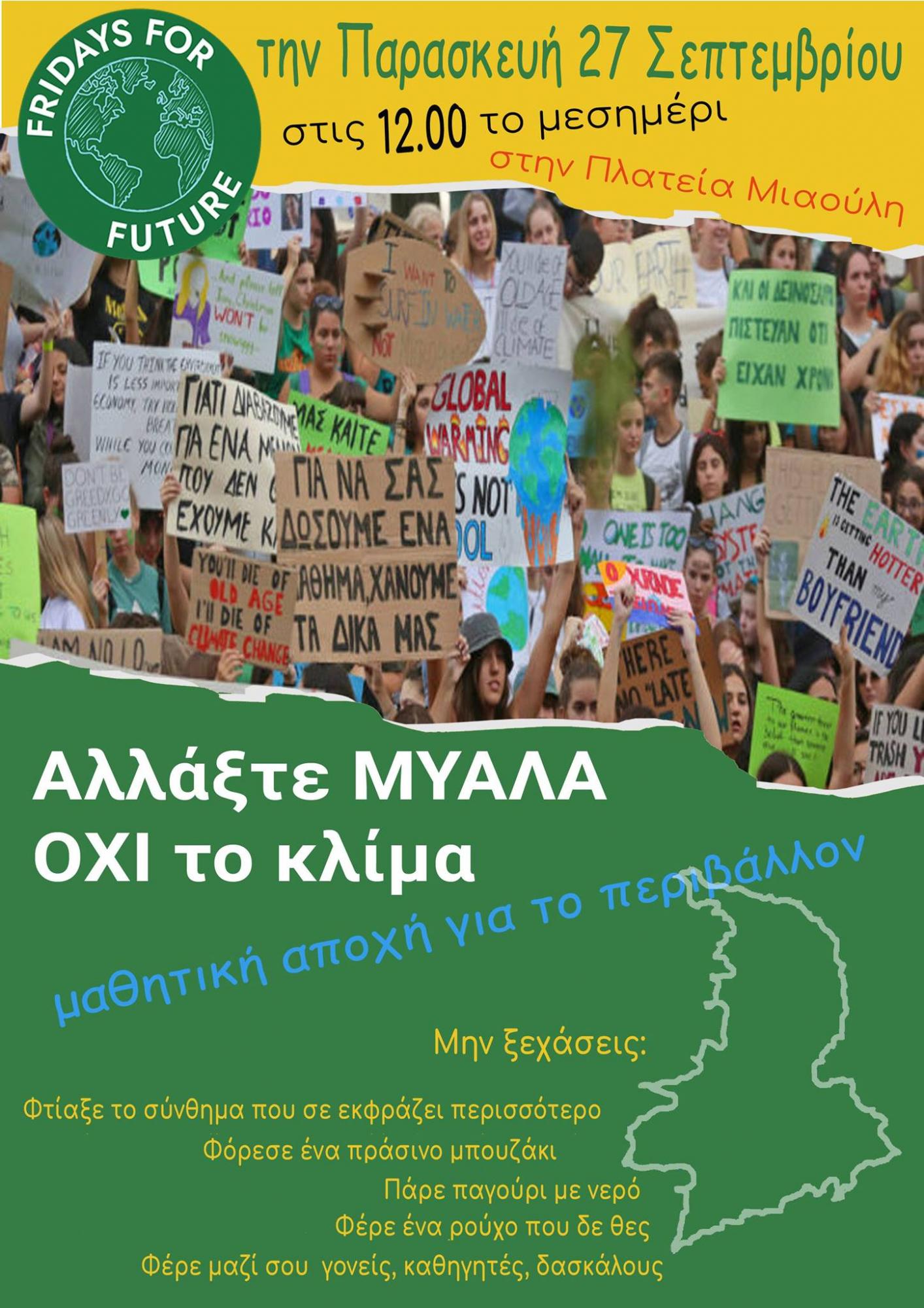 Καλούμε λοιπόν στς 12 πμ την Παρασκευή όλους τους μαθητές αλλά και τους γονείς και τους καθηγητές και όλη την κοινωνία του νησιού στην πλατεία Μιαούλη για να συντονιστούμε με τις φωνές των μαθητών όλης της γης”.