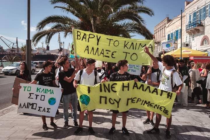 Μαθητές, γονείς, καθηγητές και πολλοί ακόμη πολίτες της Σύρου ένωσαν τις φωνές τους με το παγκόσμιο κίνημα μαθητριών/ών, πολιτών, σωματείων και λοιπών ομάδων που απαιτούν από τις κυβερνήσεις τους να αναλάβουν άμεση δράση για την αναχαίτιση της κλιματικής κρίσης και την υιοθέτηση πολιτικών που θα διατηρήσουν την πλανητική θερμοκρασία στα πιο βιώσιμα επίπεδα του +1,5°C.