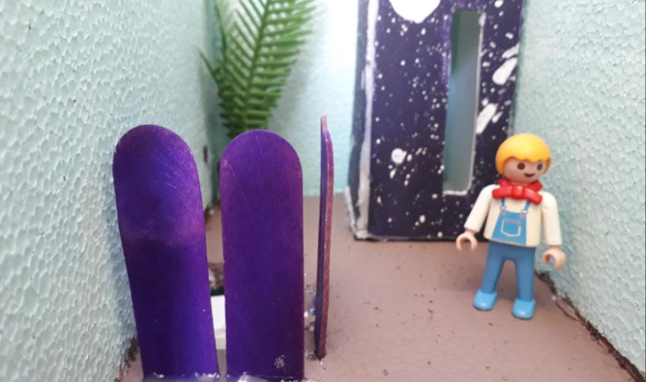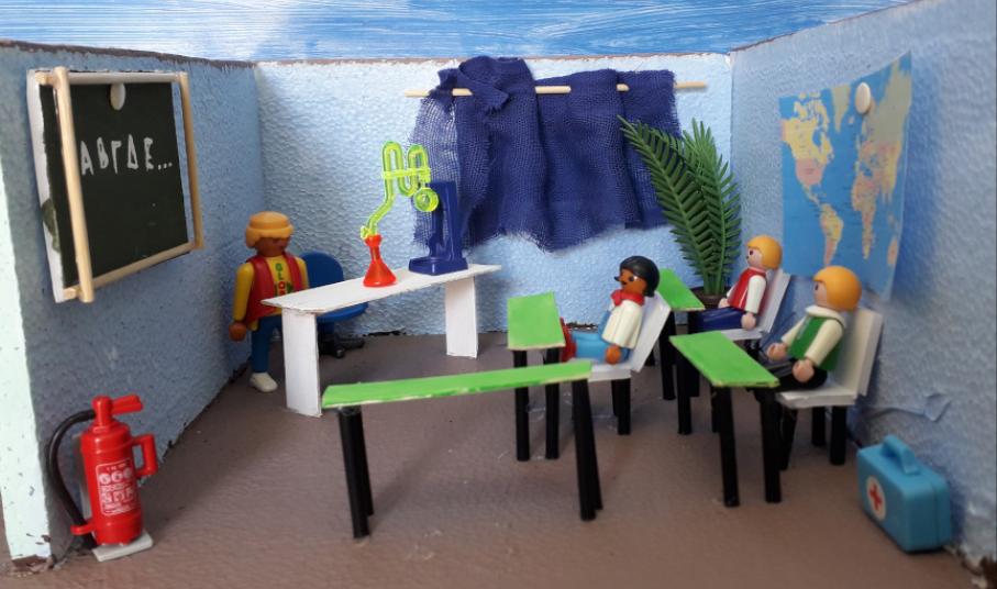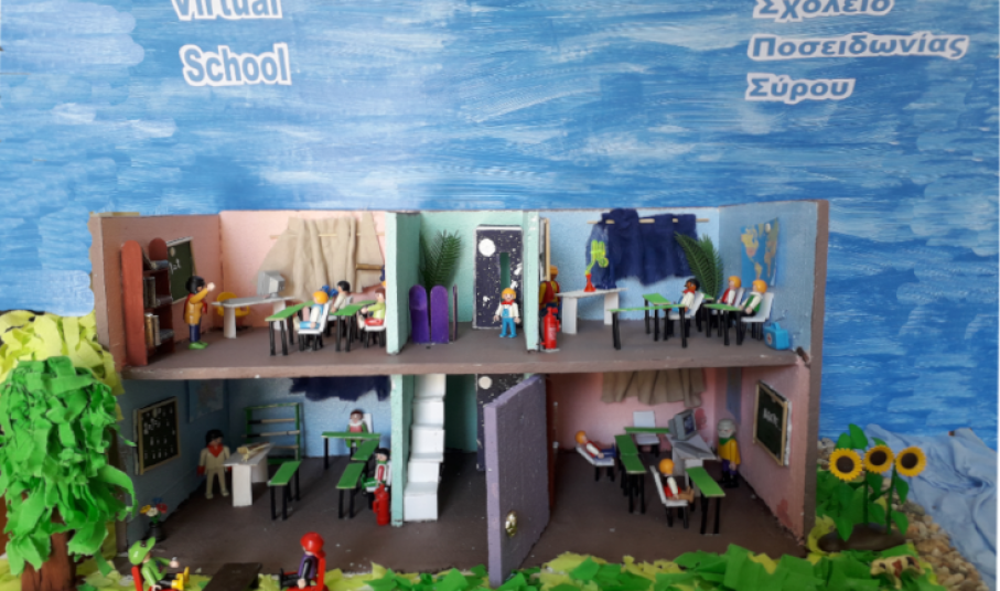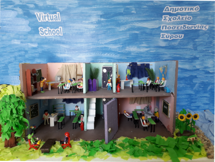 Τις ανάγκες του εκπαιδευτικού προγράμματος του Δημοτικού Σχολείου Ποσειδωνίας με θέμα την προστασία από φυσικές καταστροφές, θα εξυπηρετήσει η εντυπωσιακή αναπαράσταση ενός διώροφου σχολείου- δημιουργία εννέα μαθητών της Ε’ Τάξης.