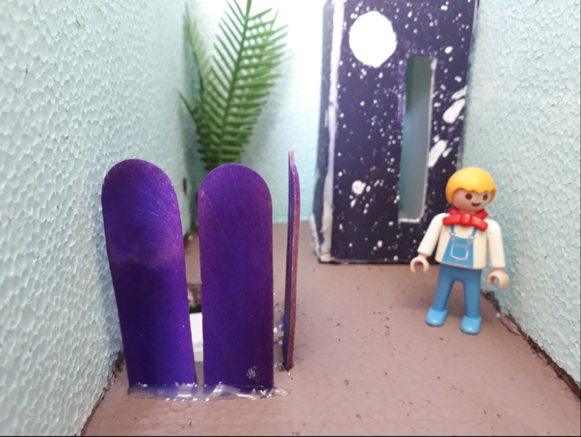 Η Αλεξάνδρα, ο Βασίλης, ο Γιάννης Φρ., η Θέλξη, η Ιωάννα, η Μαίρη, η Φανή, ο Φίλιππος και ο Φραγκίσκος μέτρησαν, υπολόγισαν, χάραξαν, έκοψαν, ζωγράφισαν, κόλλησαν, συναρμολόγησαν και διακόσμησαν τη μακέτα, με αστείρευτο μεράκι και φαντασία.