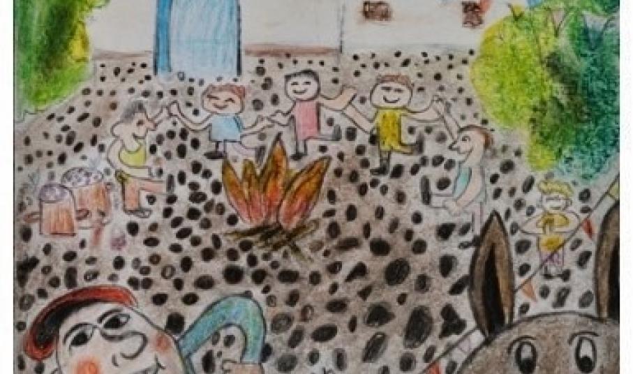Το παραδοσιακό πανηγύρι του Κλήδονα στη Σαντορίνη ήταν η πηγή έμπνευσης για την 10χρονη Άννα Αντωνιάδη που συμμετείχε στα τέλη της περσινής χρονιάς στον 20ο παγκόσμιο διαγωνισμό παιδικής ζωγραφικής Biennial World Children’s Art Exhibition, που πραγματοποιείται κάθε δύο χρόνια στην Ιαπωνία. «Οι άνθρωποι του νησιού ανάβουν φωτιές και πηδούν από επάνω για να διώξουν το κακό. Μετά ο κόσμος χορεύει. Υπάρχει πολλή χαρά, φαγητό και βαρέλια με κρασί από τον τόπο μας. Είναι ένα πολύ όμορφο πανηγύρι και γίνεται από τα πολύ παλιά χρόνια», ήταν το σημείωμα της μικρής Άννας, το οποίο συνόδευε τη ζωγραφιά της.