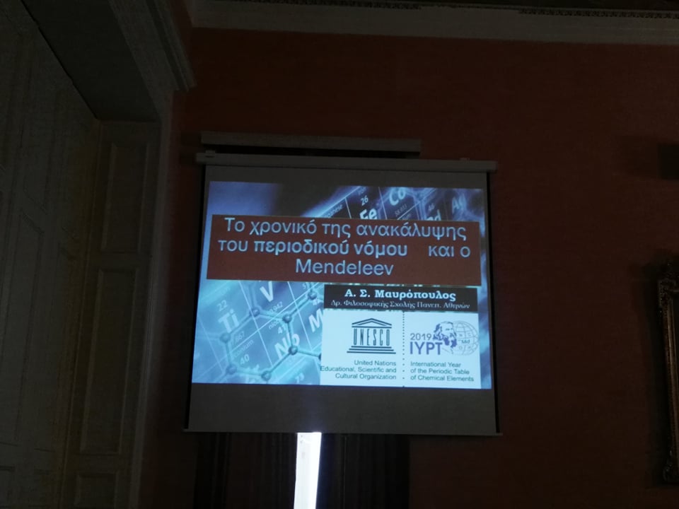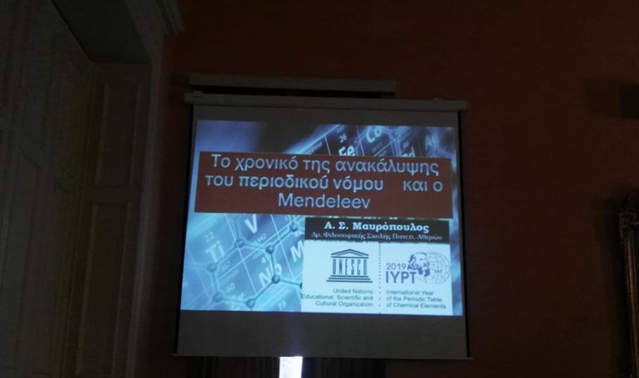 Η επιστημονική εκδήλωση με θέμα «Το χρονικό της ανακάλυψης του Περιοδικού Πίνακα» πραγματοποιήθηκε το απόγευμα της περασμένης Παρασκευής στο Πνευματικό Κέντρο Ερμούπολης, με αφορμή την 150η επέτειο της πρώτης δημοσίευσής του, από τον Ρώσο επιστήμονα Ντιμίτρι Μεντελέγιεφ.