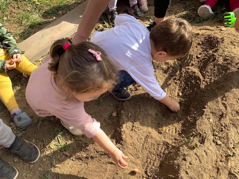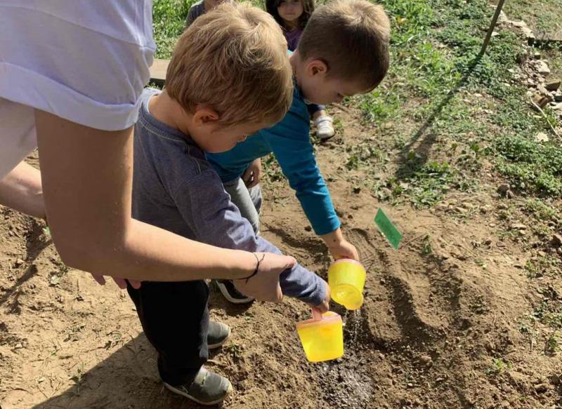 Τα παιδιά, αφού άκουσαν το ταξίδι που έκανε το σποράκι, έγιναν τα ίδια σποράκια και ταξίδεψαν στον κήπο του σχολείου. Εκεί, σε ομάδες, άνοιξαν τα αυλάκια, στα οποία φύτεψαν μαϊντανό, σέλινο, μαρούλια, καρότα και κρεμμύδια. Πότισαν τους σπόρους που φύτεψαν και στη συνέχεια έβαλαν σε κάθε φυτό τις ταμπέλες που είχαν δημιουργήσει τα ίδια τα παιδιά. Τέλος, τοποθέτησαν τον Ρέι, το σκιάχτρο τους, για να κρατάει μακριά όλους τους επίδοξους εισβολείς του κήπου τους. Η όλη δράση ολοκληρώθηκε με τραγούδια και με την υπόσχεση ότι όλοι μαζί θα φροντίσουν για την καρποφορία του.