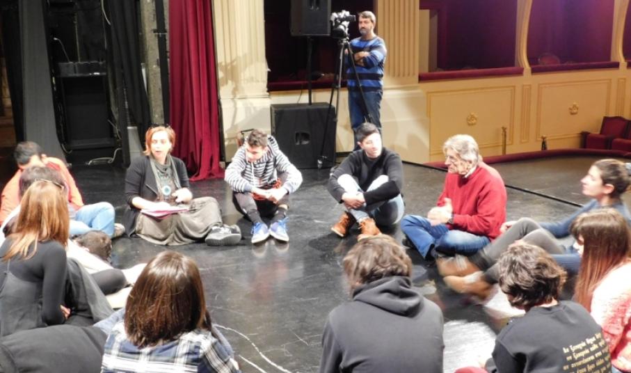 Με την καθοδήγηση του Γιώργου Μιχαλάκη και μέσα από το παιχνίδι και τις θεατρικές τεχνικές έκφρασης οι μαθητές δημιούργησαν ομαδικά τον πυρήνα ενός δικού τους σεναρίου. Η συνάντηση έκλεισε με έναν αυτοσχεδιασμό της ομάδας εμπνευσμένο από το Μολιέρο.