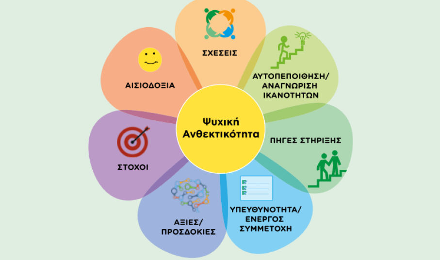 Ιδιαίτερη έμφαση δίνεται στην ενεργοποίηση και ενίσχυση των βασικών τομέων που συμβάλλουν στην προαγωγή της ψυχικής ανθεκτικότητας των μαθητών και μαθητριών.