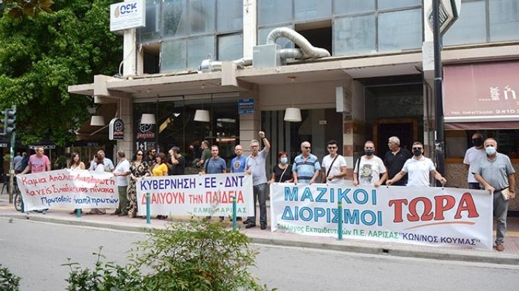 Παράσταση διαμαρτυρίας με βασικά αιτήματα τη λήψη μέτρων προστασίας για το άνοιγμα των σχολείων, πραγματοποίησαν χθες το πρωί οι εκπαιδευτικοί της Λάρισας, έξω από τα γραφεία της Περιφερειακής Διεύθυνσης Εκπαίδευσης Θεσσαλίας.
