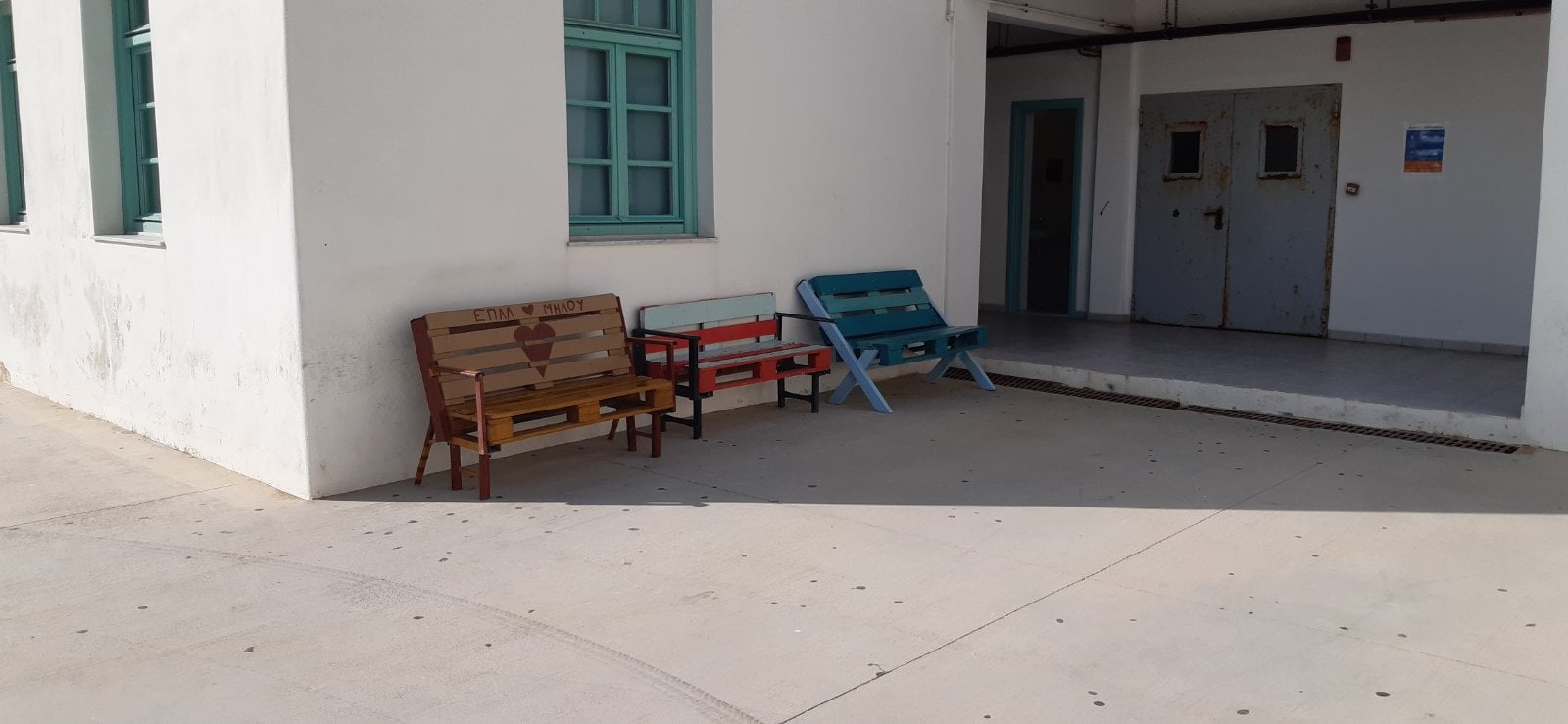 2. Κατασκευή παγκακιών και τραπεζιών από παλέτες και τοποθέτησή τους στον προαύλιο χώρο του σχολείου.