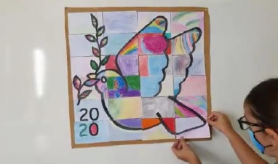 Με πολλές μικρές καθημερινές πράξεις μπορούμε να "επιλέξουμε την ειρήνη". Έτσι, τα παιδιά της Γ' τάξης, αφού συζήτησαν για τη σημαντικότητα των καθημερινών τους επιλογών, έκαναν μια συμβολική δραστηριότητα ζωγραφίζοντας το δικό τους κομμάτι του παζλ της ειρήνης. Στη συνέχεια, το κάθε παιδί έβαλε τo κομμάτι με τις "δικές του επιλογές" στο παζλ, για να σχηματιστεί η μεγάλη εικόνα της ειρήνης.