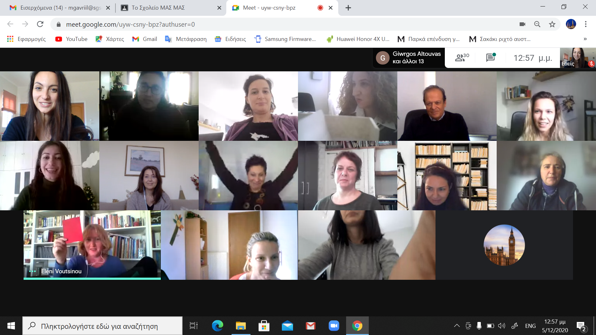 Οι εκπαιδευτικοί παρουσίασαν τα προγράμματα και τις δράσεις που είχαν προγραμματίσει για υλοποίηση με τους μαθητές κατά την τρέχουσα σχολική χρονιά και παρακολούθησαν τις παρουσιάσεις των συναδέλφων τους. Επαναπροσδιόρισαν τους στόχους μας, έκαναν αποτίμηση αποτελεσμάτων και προσέγγισαν τους σχεδιασμούς τους με τέτοιον τρόπο ώστε η εξ’ αποστάσεως εκπαίδευση να μην αποτελεί εμπόδιο στην υλοποίησή τους.