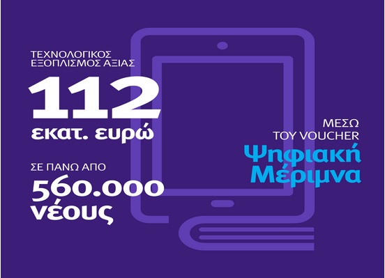 Το νέο πρόγραμμα, προϋπολογισμού 112 εκατ. ευρώ, των Υπουργείων Οικονομικών, Ανάπτυξης και Επενδύσεων, Παιδείας και Θρησκευμάτων, Εργασίας και Κοινωνικών Υποθέσεων και Ψηφιακής Διακυβέρνησης, εξασφαλίζει επιταγή (voucher) αξίας 200 ευρώ για κάθε μαθητή, σπουδαστή και φοιτητή, που εμπίπτει σε συγκεκριμένα εισοδηματικά και κοινωνικά κριτήρια, για την αγορά τεχνολογικού εξοπλισμού (tablet, laptop, desktop).
