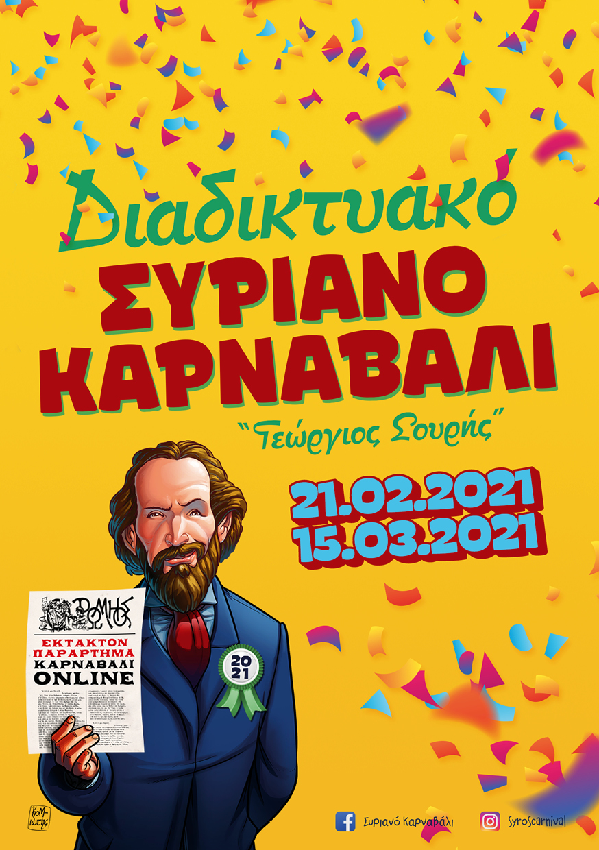 Φέτος τις απόκριες, η γιορτινή διάθεση για καρναβάλι ξεκινάει από τη Σύρο, στο πλαίσιο του OnIine Συριανού Καρναβαλιού «Γεώργιος Σουρής» 2021. Οι παραδόσεις και το καρναβάλι της Σύρου ενώνονται στο επιγραμμικό (online) εργαστήριο stop motion και cut-out animation με εκπαιδεύτρια τη νέα ελληνίδα ανιμέιτορ Πολυξένη Κάτσαρη. Τα παιδιά καλούνται να δημιουργήσουν εξ αποστάσεως τη δική τους pop-up αποκριάτικη μάσκα με απλά υλικά και μια έξυπνη ψηφιακή συσκευή (τηλέφωνο ή ταμπλέτα) με φόντο την πανέμορφη Σύρο.