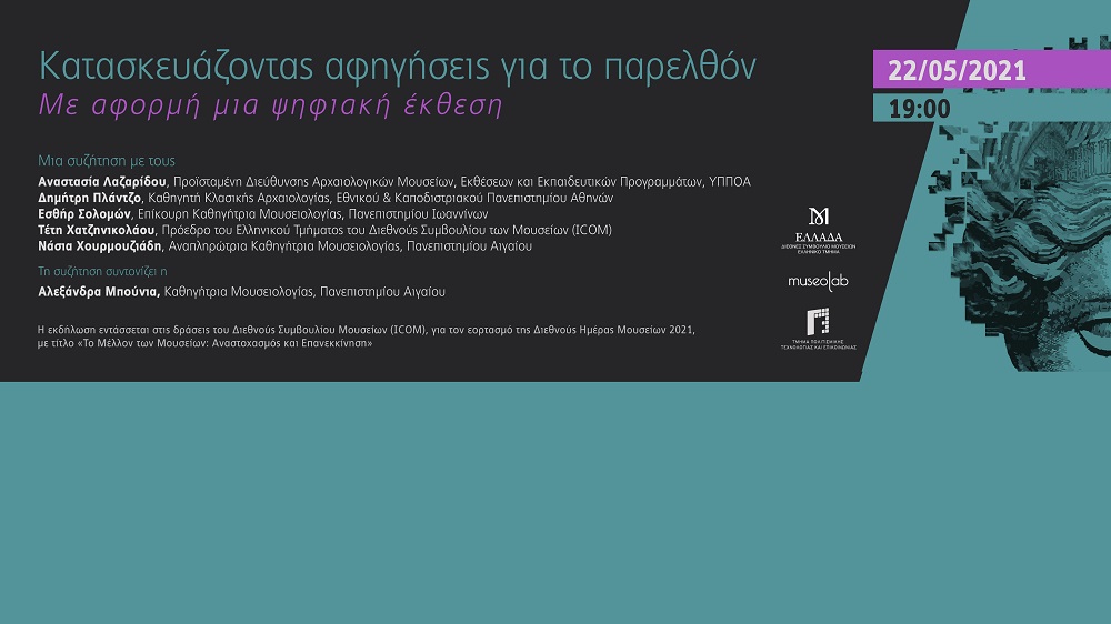Το Σάββατο στις 22 Μαΐου, στις 7:00 μμ, το Εργαστήριο Μουσειολογίας του Πανεπιστημίου Αιγαίου διοργανώνει διαδικτυακή συζήτηση με θέμα «Κατασκευάζοντας αφηγήσεις για το παρελθόν. Με αφορμή μια ψηφιακή έκθεση». Η ιδέα για τη συζήτηση προέκυψε ως μία ανάγκη να μοιραστούμε με όλους όσοι ασχολούνται με τη μελέτη του παρελθόντος και τους τρόπους με τους οποίους αυτό εισχωρεί στη σύγχρονη καθημερινότητα, αυτά που μας απασχόλησαν καθώς σχεδιάζαμε, πέρυσι, μία έκθεση για τη «συμπατριώτισσά» μας τη Σαπφώ, στο πλαίσιο των μαθημάτων της κατεύθυνσης Μουσειολογίας του Μεταπτυχιακού Προγράμματος Σπουδών «Πολιτισμική Πληροφορική και Επικοινωνία» του Τμήματος Πολιτισμικής Τεχνολογίας και Επικοινωνίας του Πανεπιστημίου Αιγαίου.
