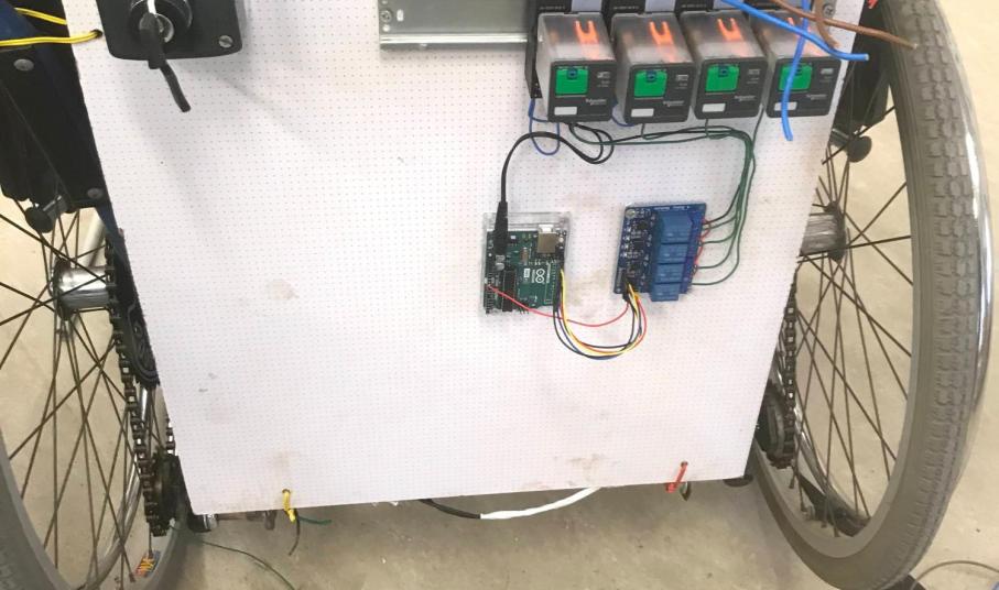 Για τη λειτουργία του έργου «Μετακίνηση αναπηρικού αμαξιδίου με τη σκέψη» χρειάστηκαν 2 ARDUINO UNO καθώς και ένα plc SIEMENS LOGO. Αξίζει να σημειωθεί πως, το Εσπερινό ΕΠΑΛ Θήρας συμμετέχει με το συγκεκριμένο έργο στον 3ο Πανελλήνιο Διαγωνισμό Ανοιχτών Τεχνολογιών στην Εκπαίδευση με θέμα την Τεχνική Νοημοσύνη.