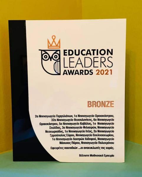 Mε το Χρυσό Βραβείο στα Education Leader Awards 2021 τιμήθηκε το 2o Νηπιαγωγείο Ερμούπολης για τη συμμετοχή του στο ευρωπαϊκό πρόγραμμα E-twinning με θέμα την δημιουργική ανακύκλωση και με τίτλο «Εφευρέτες παιχνιδιών - Ανακυκλωτές της Χαράς» την χρονιά 2019-2020.