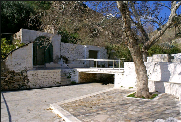 Σημείο συνάντησης στην αρχή του πλακόστρωτου μονοπατιού, κάτω από τον Μύλο.