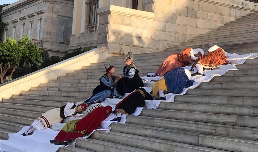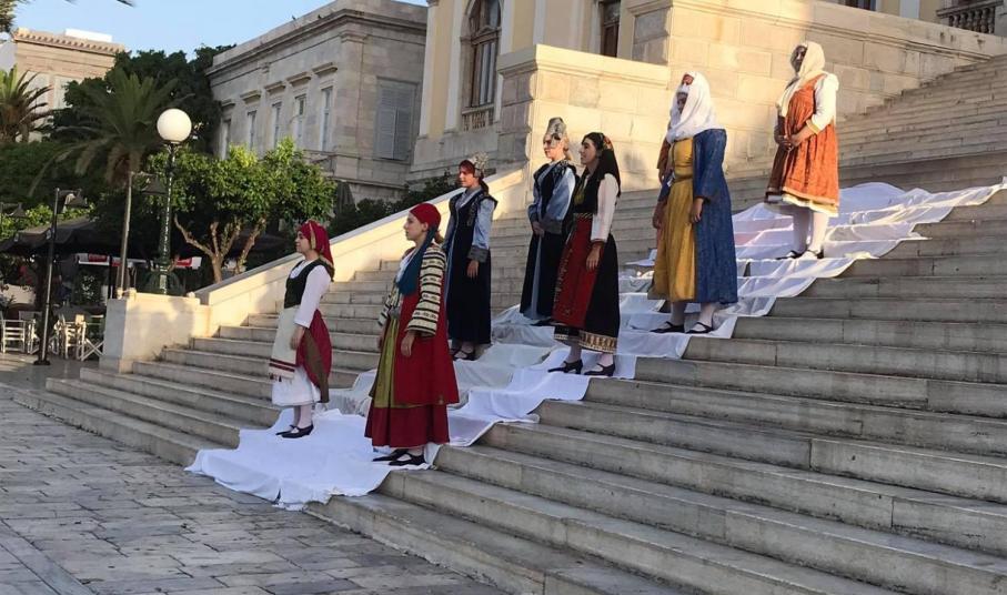 Το Δημόσιο Ινστιτούτο Επαγγελματικής Κατάρτισης Σύρου ανταποκρίθηκε στην παραπάνω πρόσκληση και συμμετέχει στον διαγωνισμό με ένα δρώμενο που μαγνητοσκοπήθηκε το περασμένο σαββατοκύριακο στην πλατεία Μιαούλη και ειδικότερα, στα σκαλιά του εμβληματικού Δημαρχείου της Ερμούπολης. Μέσα από το βίντεο που θα σταλεί στο Υπουργείο και θα αναρτηθεί πιθανόν το προσεχές φθινόπωρο θα δούμε μεγάλες γυναίκες μορφές του 1821 όπως η Μαντώ Μαυρογένους που τιμήθηκε με τον βαθμό της αντιστρατήγου για τη συνολική προσφορά της στον Αγώνα, η Λασκαρίνα “Μπουμπουλίνα” Πινότση, οι Σουλιώτισσες Δέσπω και Μόσχω Τζαβέλλα, καθώς και η Αλεφαντώ, η Μεσολογγίτισσα.