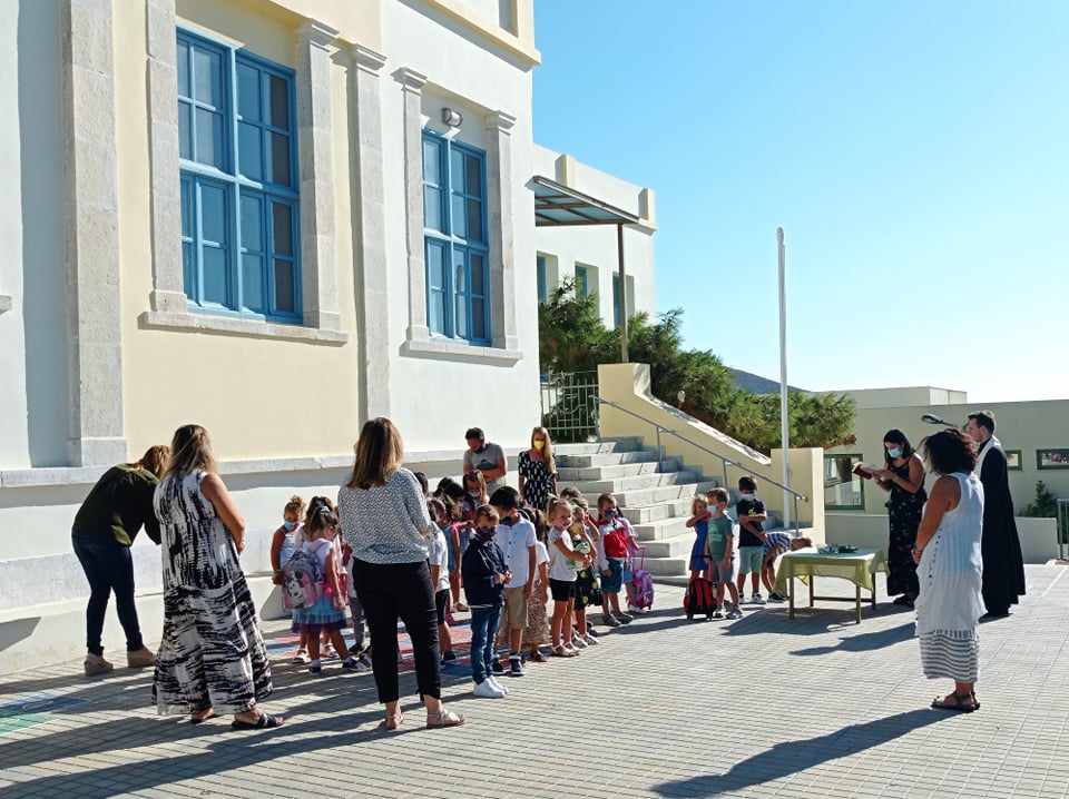 Το πρώτο σχολικό κουδούνι βρήκε τα μικρά και μεγάλα παιδιά με μάσκες εντός των αιθουσών ενώ οι αγιασμοί τελέσθηκαν στις αυλές των σχολείων, παρουσία αντιπροσωπειών εκπαιδευτικών και μαθητών.