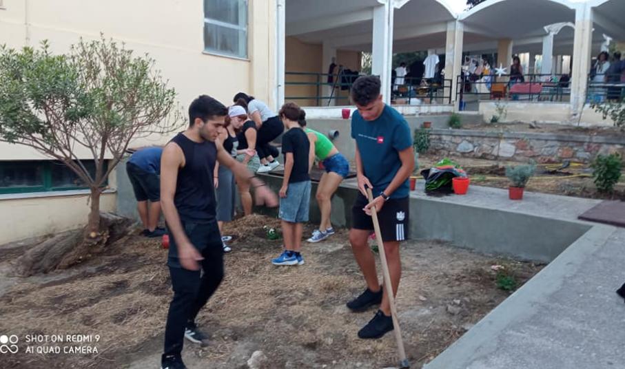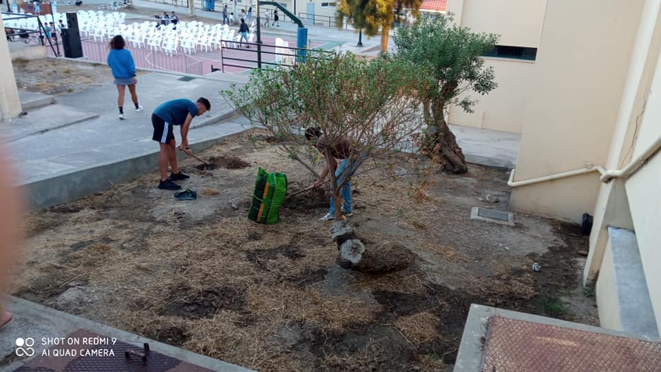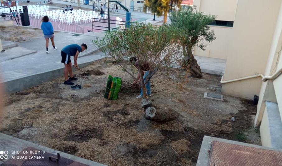 Στο πλαίσιο του 5ου Stray Art Festival, φετινοί απόφοιτοι του Γενικού Λυκείου Σύρου, μέλη των περιβαλλοντικών ομάδων, του "Συροπερπατώ", της ομάδας κινηματογράφου και ραδιοφώνου που κέρδισαν βραβεία σε μαθητικούς καλλιτεχνικούς διαγωνισμούς, διαμορφώνουν με δική τους πρωτοβουλία τρία επίπεδα - παρτέρια με φυτεύσεις δένδρων και θάμνων.