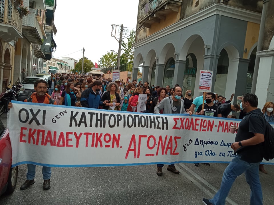 Η πορεία της Κέρκυρας έγινε ταυτόχρονα με τη μαζική κινητοποίηση των εκπαδευτικών στην Αθήνα.