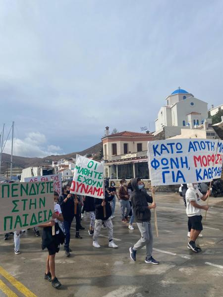 Την Δευτέρα 11-10-2021, εμείς, οι μαθητές του Γυμνασίου με Τ.Λ. Κέας, κάναμε αποχή από τα μαθήματα και πραγματοποιήσαμε πορεία στο λιμάνι του νησιού συμμετέχοντας στις κινητοποιήσεις μαθητών και σπουδαστών από όλη την Ελλάδα.