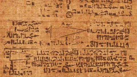Ο πάπυρος του Rhind, που είναι γνωστός και ως πάπυρος του Αχμές, αποτελεί το καλύτερο παράδειγμα των αιγυπτιακών μαθηματικών. Ανακαλύφθηκε τον 19ο αιώνα στον τάφο του Ραμσή Β’ στις Θήβες και πήρε το όνομά του από τον Αλέξανδρο Henry Rhind, έναν Σκωτσέζο αρχαιολόγο ο οποίος αγόρασε τον πάπυρο το 1858 στο Λούξορ (Αίγυπτος) και τον μετέφερε στην Αγγλία στο Βρετανικό Μουσείο. Ο κύλινδρος αυτός έχει γραφτεί στην ιερατική γραφή, είναι μακρύτερος από πέντε μέτρα και αποτελείται από 14 φύλλα παπύρου που περιέχουν δεκάδες προβλήματα κάθε είδους. Ο συγγραφέας του παπύρου ονομάζεται Αχμές ο οποίος δηλώνει πως το κείμενο αντιγράφει στοιχεία από έναν πάπυρο ακόμα παλαιότερο που γράφτηκε την περίοδο της βασιλείας του Αμένεμη Γ’ (2.000 χρόνια π.Χ.) Το μαθηματικό υλικό που παρουσιάζεται στον πάπυρο του Rind ανάγεται στην εποχή κατασκευής των πυραμίδων (2.800 χρόνια π.Χ.)