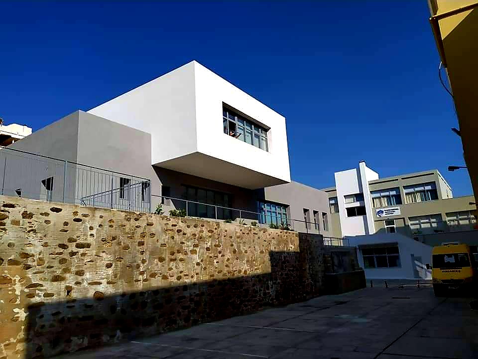Το Γυμνάσιό στεγάζεται σε ένα σύγχρονο και πλήρως εξοπλισμένο κτίριο, που βρίσκεται σ’ ένα θαυμάσιο περιβάλλον 12 στρεμμάτων. Στις εγκαταστάσεις του λειτουργούν Παιδικός Σταθμός, Νηπιαγωγείο , Δημοτικό, Λύκειο, Κέντρο Ξένων Γλωσσών, Κέντρο Συμβουλευτικής και θερινό σχολείο. Παράλληλα με αυτά λειτουργούν δύο γήπεδα βόλεϊ, ένα γήπεδο μπάσκετ, ένα γήπεδο ποδοσφαίρου, ένας κλειστός χώρος άσκησης με τραπέζια πινγκ-πονγκ, στεγασμένη παιδική χαρά και πάρκο κυκλοφοριακής αγωγής για τα μικρότερα παιδιά.