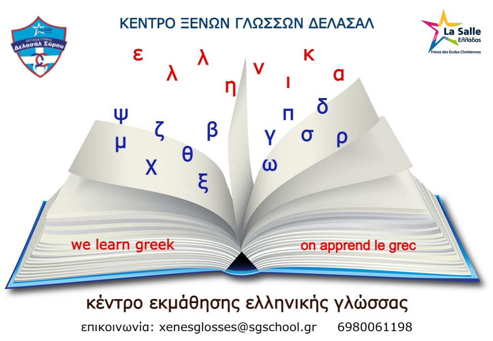 Στα Εκπαιδευτήρια Δελασάλ Σύρου αντιλαμβανόμαστε τις ανάγκες μιας κοινωνίας που εξελίσσεται με γοργούς ρυθμούς και δίνουμε τη δυνατότητα σε όποιον το επιθυμεί να διδαχθεί την ελληνική γλώσσα και να συμμετέχει στις Εξετάσεις Πιστοποίησης Ελληνομάθειας .