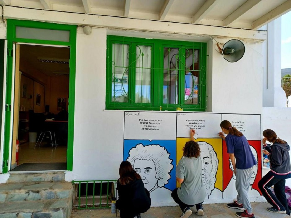 Σε ό,τι αφορά το υπέροχο εικαστικό αποτέλεσμα στους τοίχους του σχολείου της Πάρου, δήλωσε: