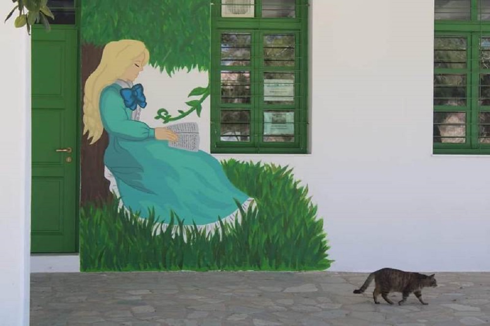 Μετά την ολοκλήρωση της ενεργειακής αναβάθμισης του σχολείου μας, μέσω του Πράσινου Ταμείου, επικοινώνησε μαζί μου ο Ιωάννης Περράκης, φοιτητής της Σχολής Καλών Τεχνών (πρώην μαθητής μας) και μου πρότεινε να δημιουργήσει τοιχογραφίες (γκράφιτι ) στους γυμνούς τοίχους του σχολείου μας για να χρωματίσουν ευχάριστα την καθημερινότητά μας.