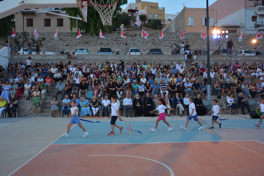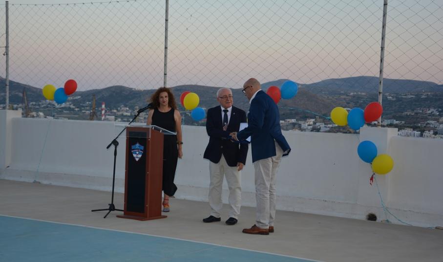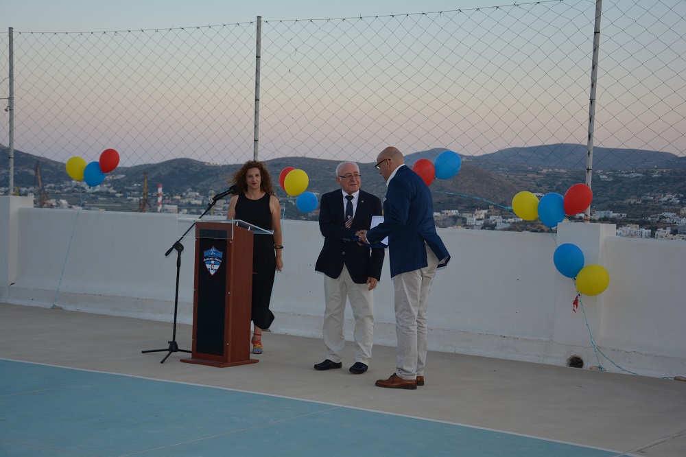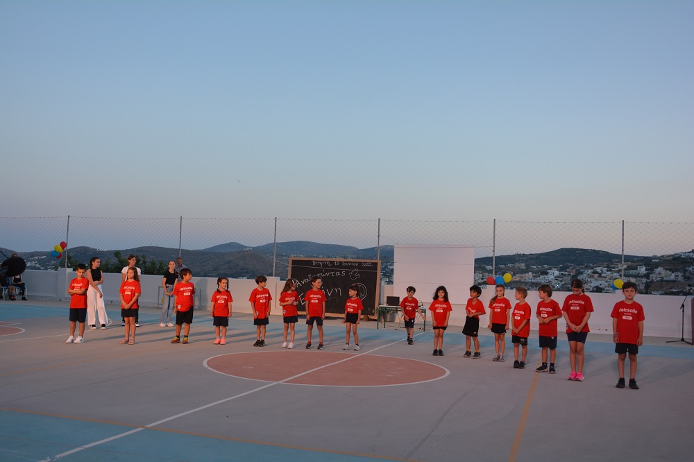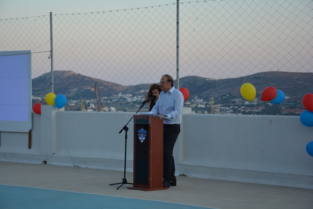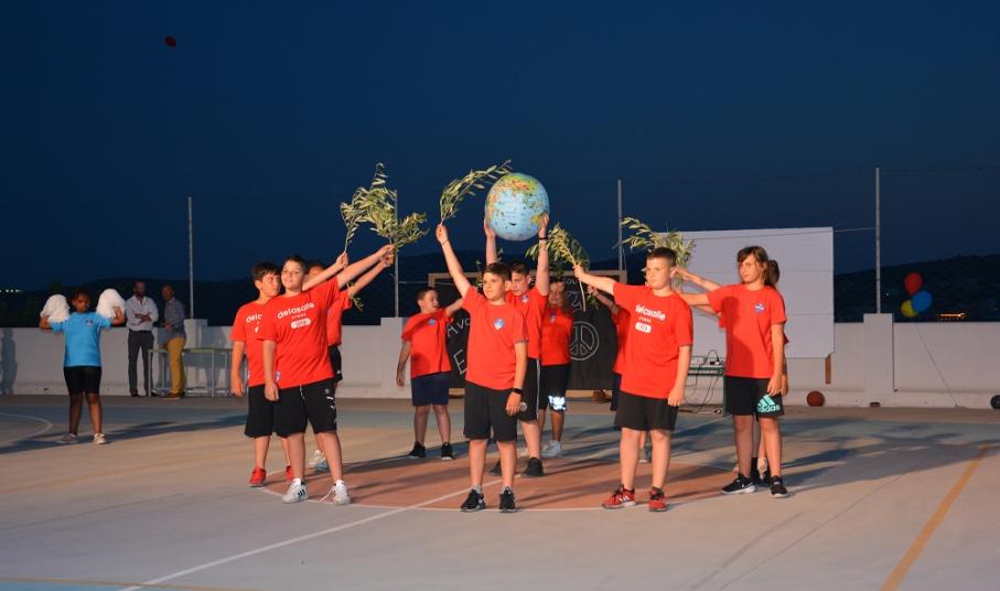 Μια μεγάλη εορταστική συγκέντρωση διοργάνωσαν τα Εκπαιδευτήρια Δελασάλ Σύρου το βράδυ της Τετάρτης 15 Ιουνίου, για να αποχαιρετήσουν τη σχολική χρονιά οι μικροί μαθητές και οι εκπαιδευτικοί τους. Ταυτόχρονα, έγιναν τα εγκαίνια του νέου αθλητικού χώρου “Αθηνά Μαρτίνου” και αποδόθηκε τιμητική πλακέτα στον χορηγό Αθανάσιο Μαρτίνο.