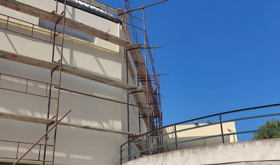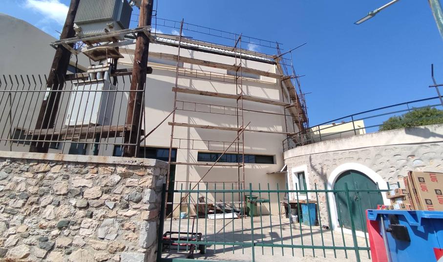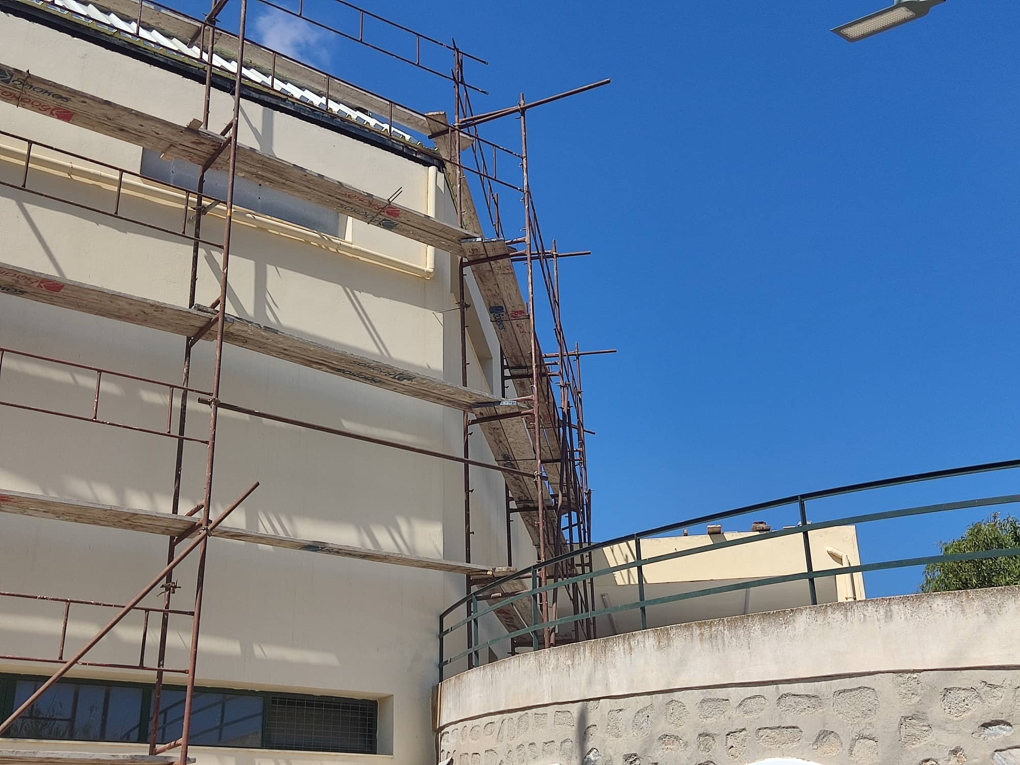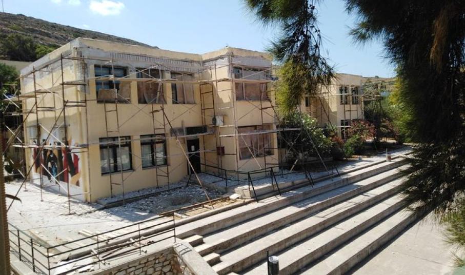 Εν προκειμένω, στο συγκρότημα των Λυκείων είναι σε εξέλιξη και τείνει προς ολοκλήρωση το έργο της ενεργειακής αναβάθμισης, που μεταξύ άλλων, περιλαμβάνει καθαιρέσεις των επικίνδυνων σοβάδων, συντηρήσεις στον οπλισμό και στα σίδερα των κτιρίων αλλά και αποκατάσταση της εξωτερικής όψης τους.