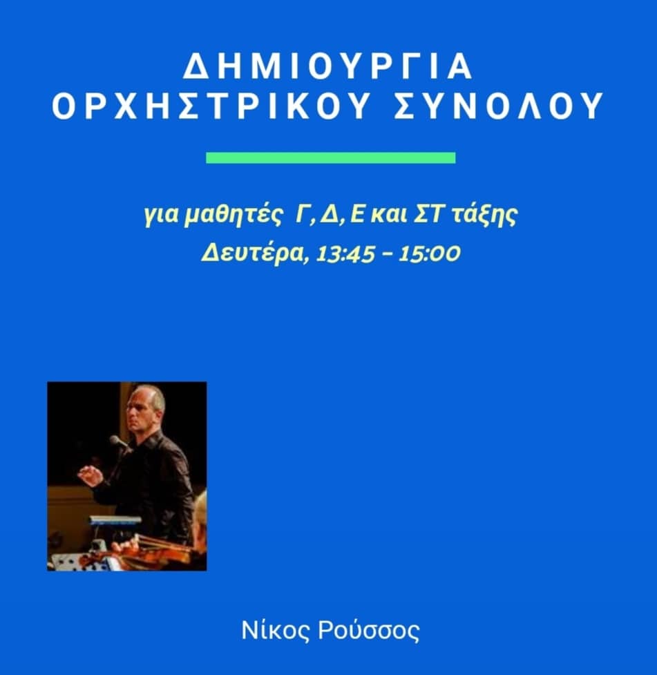 Δημιουργία ορχηστρικού συνόλου, Νίκος Ρούσσος ( Γ, Δ, Ε και Στ τάξης, Δευτέρα, 13:45 – 15:00)