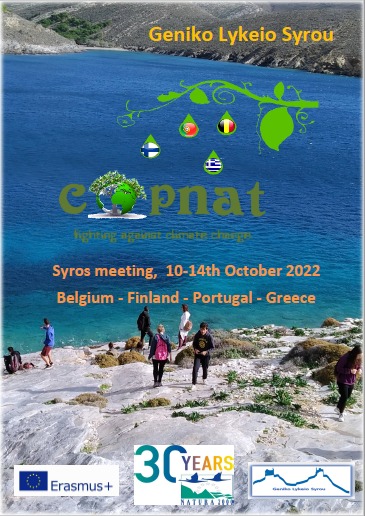 Το Γενικό Λύκειο Σύρου ως εκπρόσωπος της Ελλάδας στο πρόγραμμα Copnat- Care of our Planet with Natura 2000 and stand up against climate change. διοργανώνει την 2η συνάντηση κινητικότητας του προγράμματος με θέματα για την οργανική γεωργία - κυκλική οικονομία, μεσογειακό οικοσύστημα - προστατευμένες περιοχές Natura 2000 της Σύρου και Γυάρου, βιώσιμες τροφές- αειφόρα παραγωγή τροφίμων.
