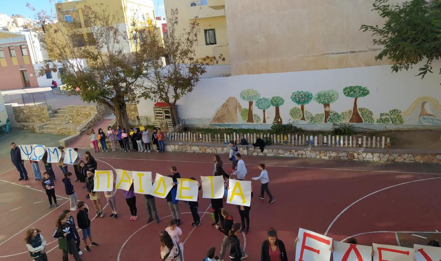 Αυτό το δρώμενο πραγματοποιήθηκε στην αυλή του 4ου Πειραματικού Δημοτικού Σχολείου Σύρου με αφορμή τον εορτασμό της εξέγερσης του Πολυτεχνείου!
