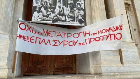 29/5: Μαθητές, φοιτητές, γονείς και εκπαιδευτικοί του νησιού συγκεντρώθηκαν στην κεντρική πλατεία της Ερμούπολης διαμαρτυρόμενοι για την πρόθεση του ΥΠΑΙΘ αλλά και της επιτροπής ΣΣΠΑΕ που γνωμοδότησε θετικά, ώστε να μετατραπεί το μοναδικό ΕΠΑΛ του νησιού σε «ΠΡΟΤΥΠΟ».