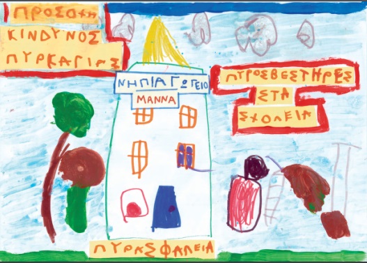 Το Νηπιαγωγείο Μάννα Σύρου, στο πλαίσιο του περιβαλλοντικού προγράμματος με τίτλο "Ο άνθρωπος που έδινε", φιλοτέχνησε και κατασκεύασε αφίσες για τη πρόληψη κατά των πυρκαγιών.