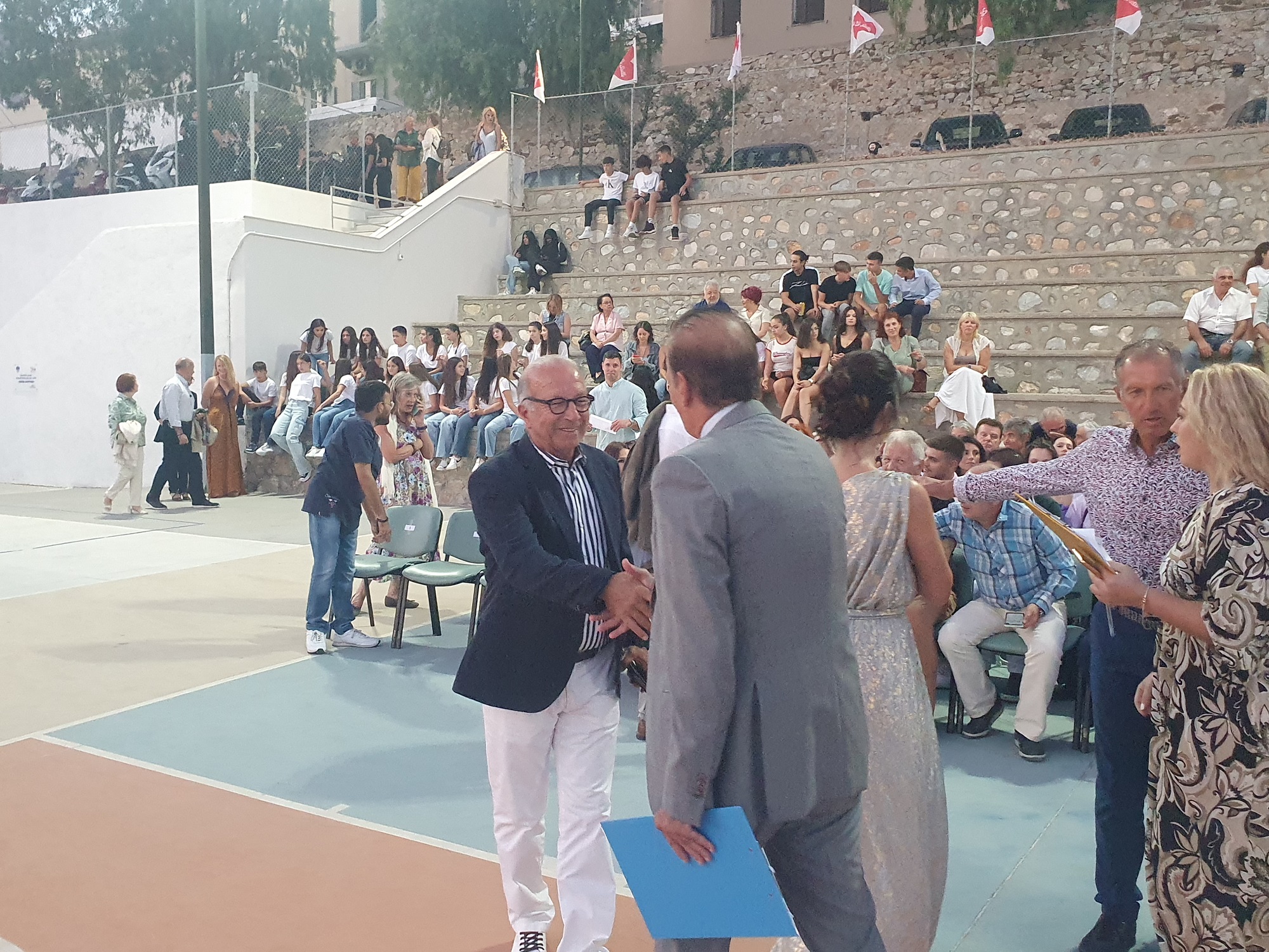 Από την πλευρά του Δήμου Σύρου-Ερμούπολης, το μήνυμα μετέφερε η πρόεδρος της Δημοτικής Επιτροπής Παιδείας, Ειρήνη Δράκου, η οποία ήταν σύντομη και περιεκτική, επισημαίνοντας ότι “είμαι ιδιαίτερα χαρούμενη ως παλιά εκπαιδευτικός και εκπροσωπώντας τον Δήμο, να ευχηθώ καλορίζικο και να έχετε καλή πορεία και σε αυτό το σχολείο. Σαν Συριάνη σας γνωρίζω από τη μέρα που γεννήθηκα και μπορώ να πω ότι είστε η ιστορία του τόπου μας. Γνωρίζω πολύ καλά τα εκπαιδευτικά σας εργαλεία, την ποιότητα των εκπαιδευτικών σας, τα παιδιά που έρχονται και εύχομαι να συνεχίσετε να κρατάτε ψηλά το επίπεδο του σχολείου. Αυτό βοηθά όλη την εκπαιδευτική κοινότητα, η δημόσια την ιδιωτική και το αντίστροφο, να συνεργάζονται και να τραβάνε και οι δύο όσο ψηλότερα γίνεται. Καλορίζικο και καλή επιτυχία.” Έπειτα, τον λόγο πήρε ο διευθυντής δευτεροβάθμιας εκπαίδευσης νομού Κυκλάδων, Ξενοφώντας Βαμβακερός, ο οποίος ευχήθηκε και από την πλευρά του επιτυχημένη πορεία στο νέο Λύκειο, ενώ διαβάστηκε και επιστολή του υφυπουργού Αθλητισμού, Γιάννη Βρούτση.