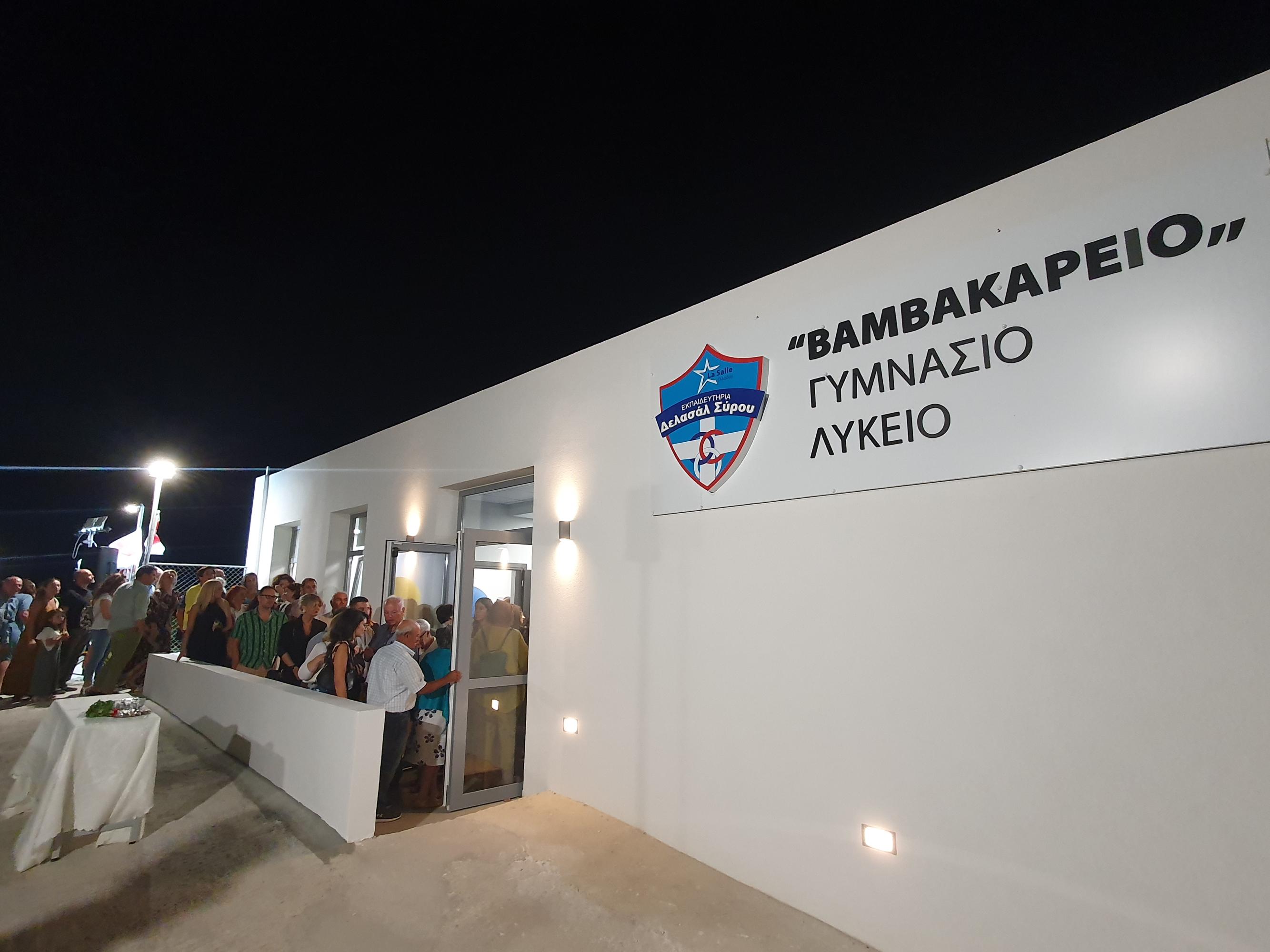 Με το γενικό σύνθημα να είναι ότι, "η κατασκευή και λειτουργία ενός νέου σχολείου αποτελεί το σημαντικότερο γεγονός σε κάθε τοπική κοινωνία", πραγματοποιήθηκαν το απόγευμα του Σαββάτου, τα εγκαίνια του Βαμβακάρειου Λυκείου των Εκπαιδευτηρίων «Δελασάλ» Σύρου. Κατά τη διάρκεια της λαμπερής εκδήλωσης υπήρξαν συγκινησιακά φορτισμένες στιγμές, με ανθρώπους που έχουν άρρηκτη σχέση με τα Εκπαιδευτήρια.