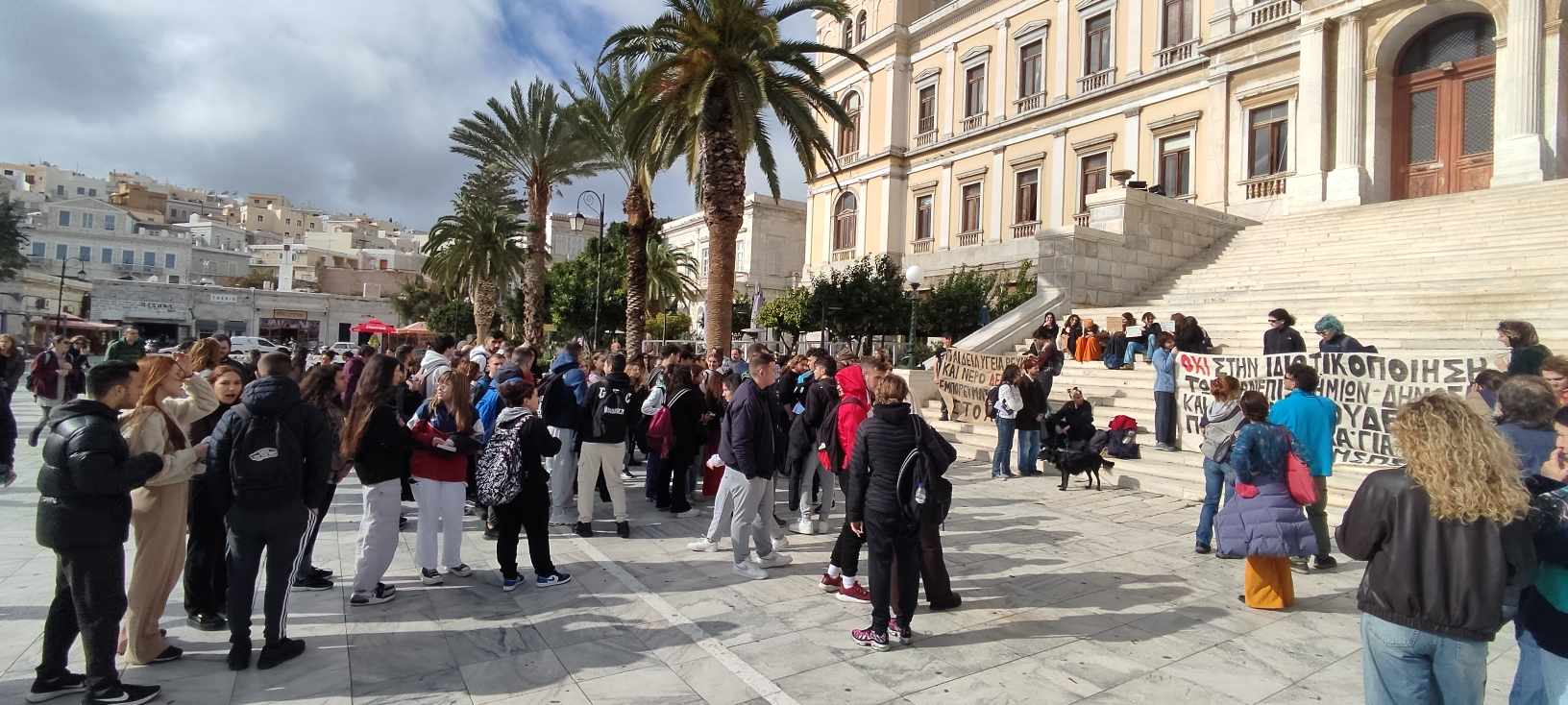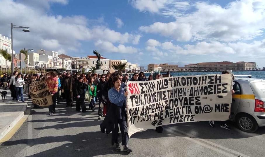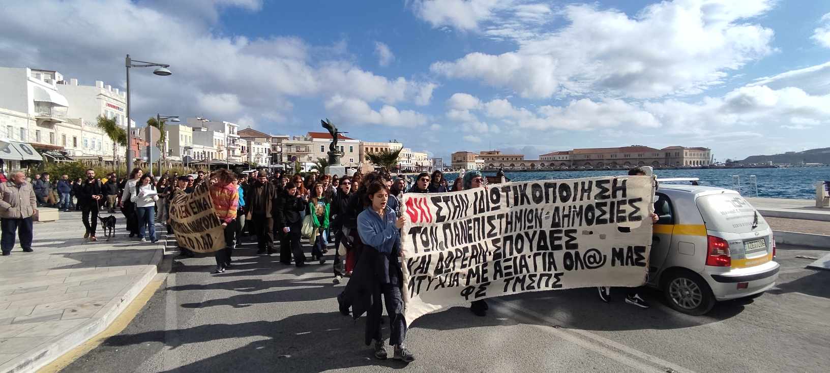 Πορεία διαμαρτυρίας πραγματοποιείται από φοιτητές και πολίτες το μεσημέρι της Πέμπτης στη Σύρο, ενάντια στην προωθούμενη πολιτική της κυβέρνησης για ίδρυση ιδιωτικών Πανεπιστημίων στη χώρα.
