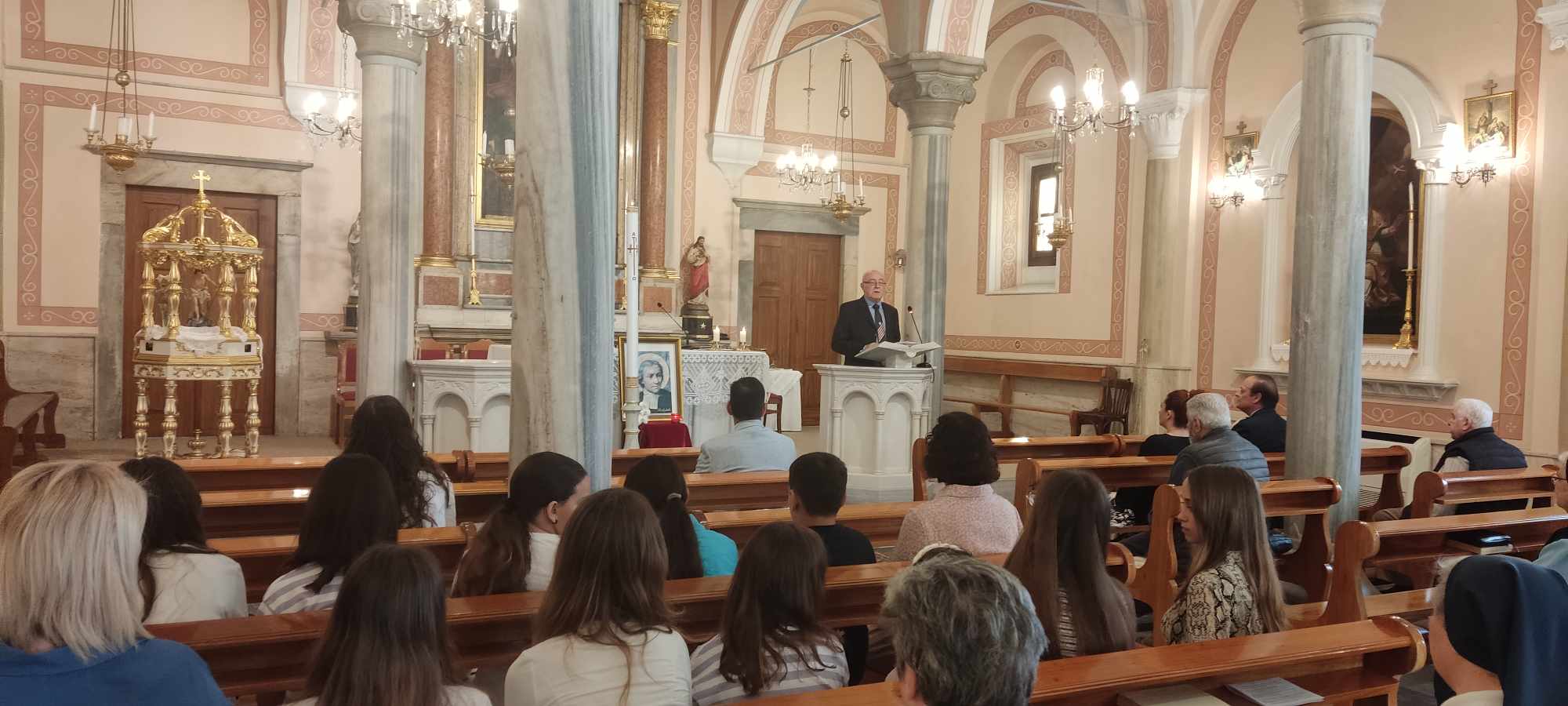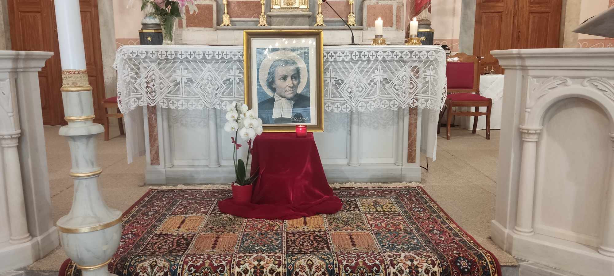 Ιερή θεία λειτουργία προς τιμήν του Αγ. Ιωάννη Βαπτιστή Δελασάλ, πραγματοποιήθηκε χθες το απόγευμα στον ιερό ναό Ευαγγελίστριας. Ο εορτασμός αυτός είναι μία από τις πολυάριθμες εκδηλώσεις που διεξάγονται και στις πέντε ηπείρους από όλα τα μέλη της Παγκόσμιας Λασαλιανής οικογένειας.